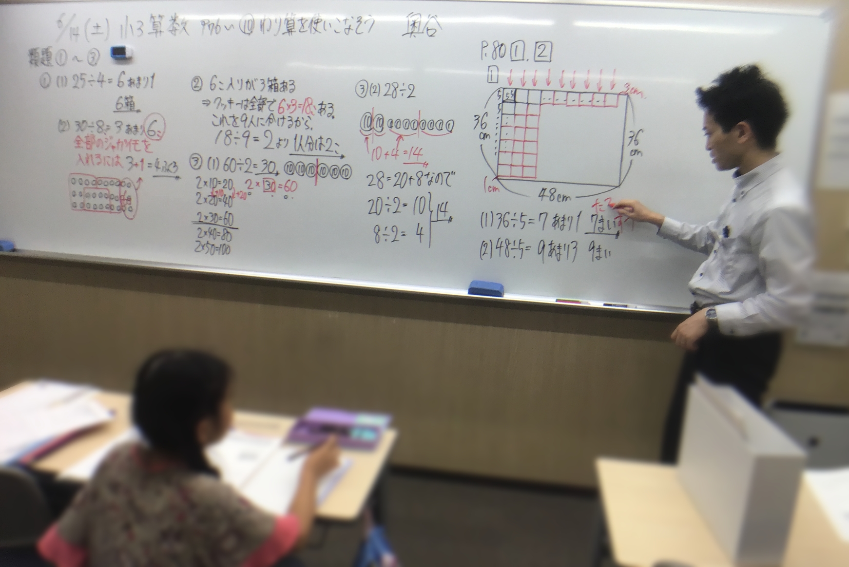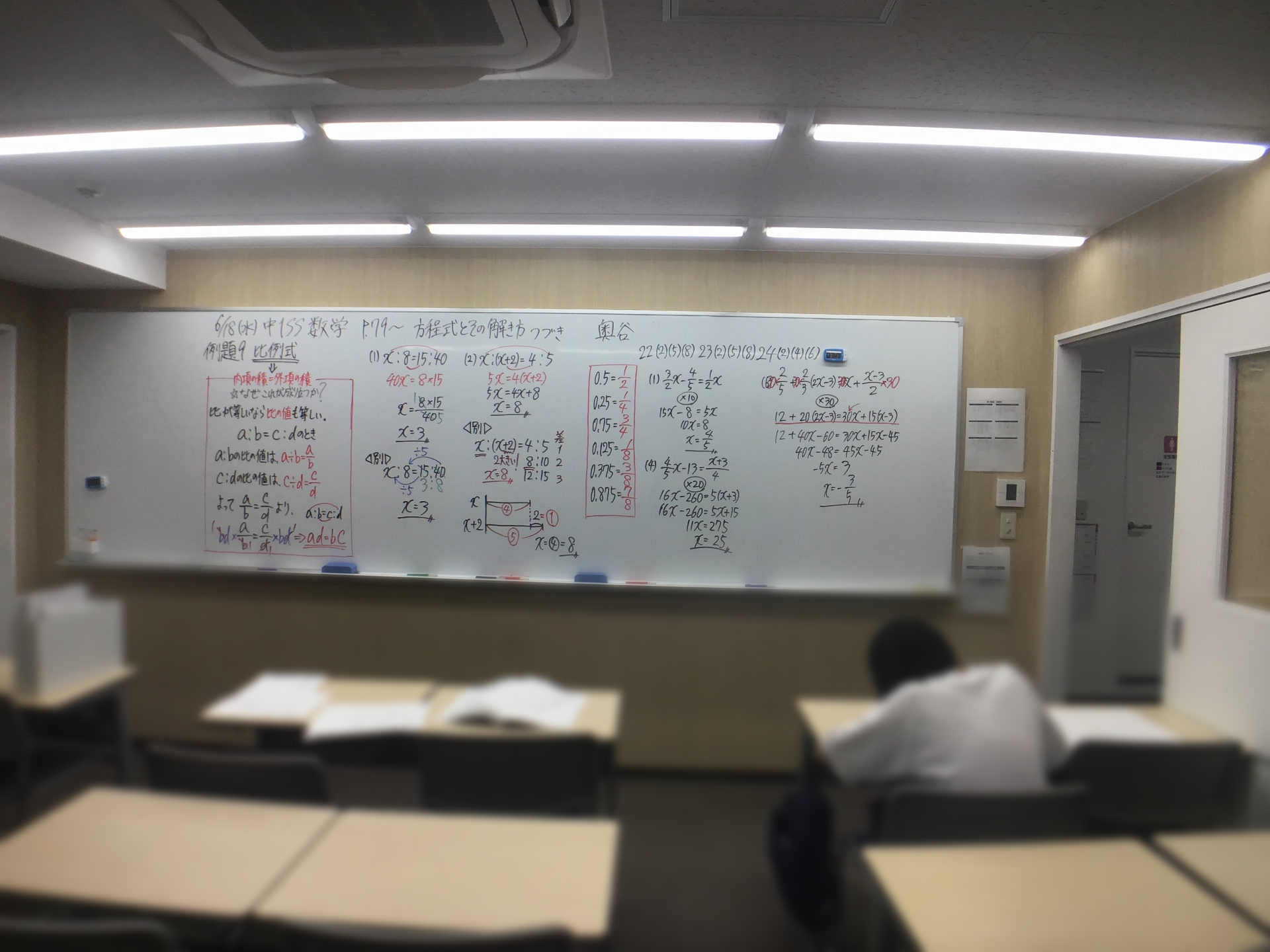 また、比例式ということは比なので、違う捉え方もできるということも話しています。ここら辺はどこまで教えるかということになってくるのですが、ですが比に関しても図形に関しても文章題に関しても難関・最難関私立を併願するレベルの子どもたちには中学受験のそれが必要不可欠です。ですので、直接的に解くだけだと関係のないことでも、必要なので確認をするという作業は怠ることができません。ゆくゆくのことを考えた場合に比や割合の感覚は磨いておかなければなりませんしね。