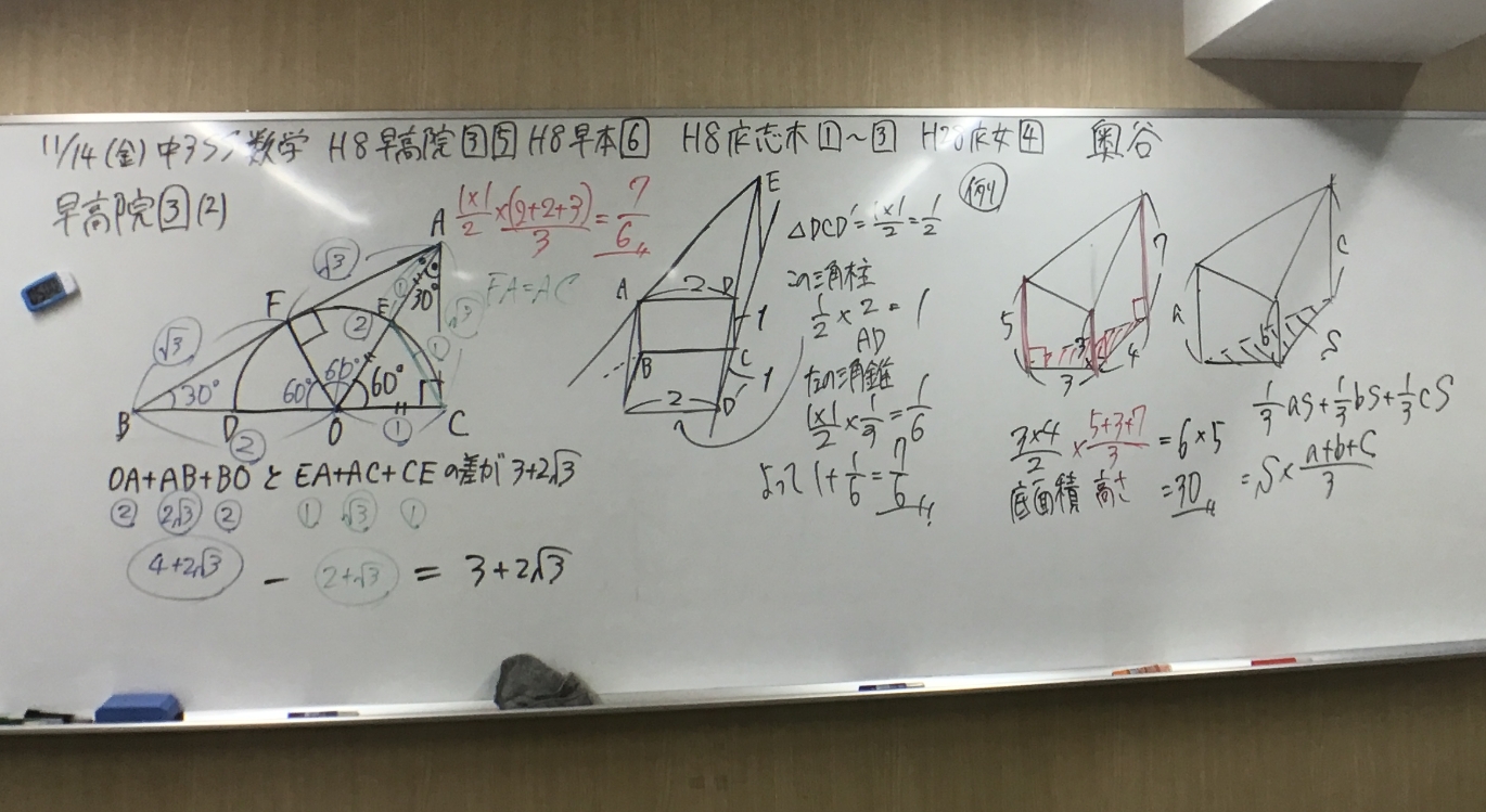 ・火曜は国立早慶レベルの大問1,2集問題や中学入試問題