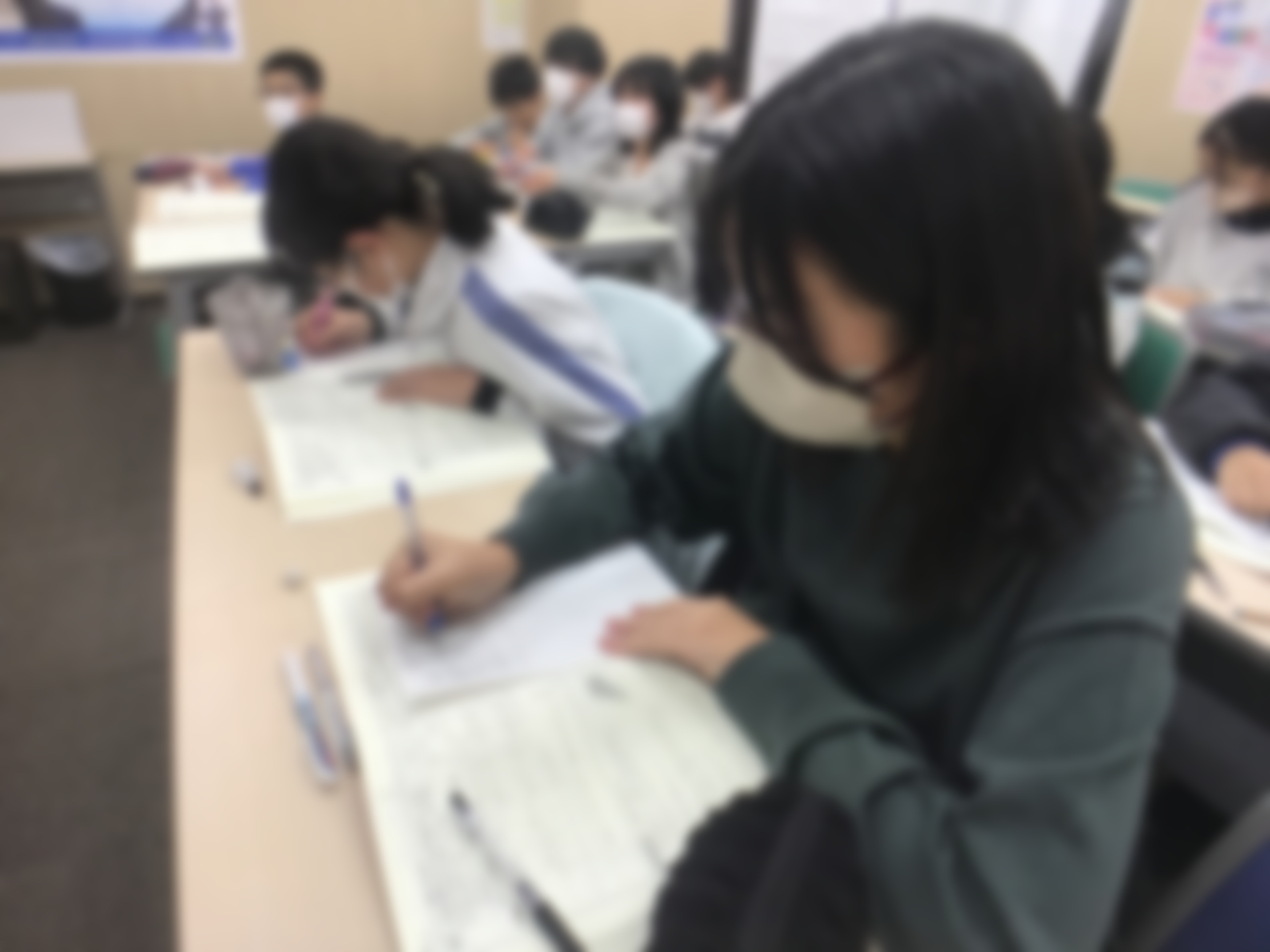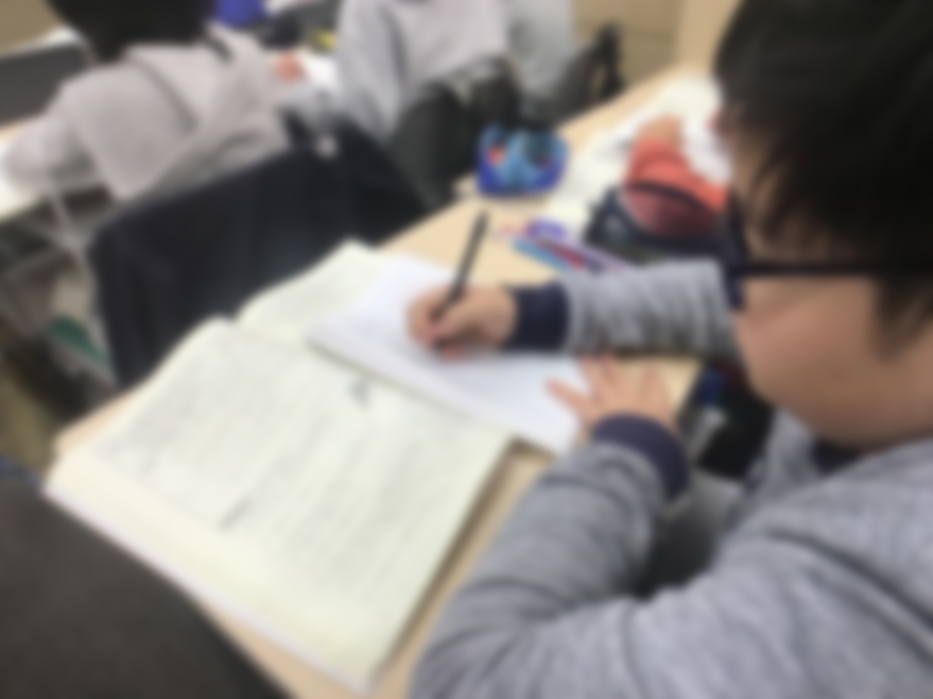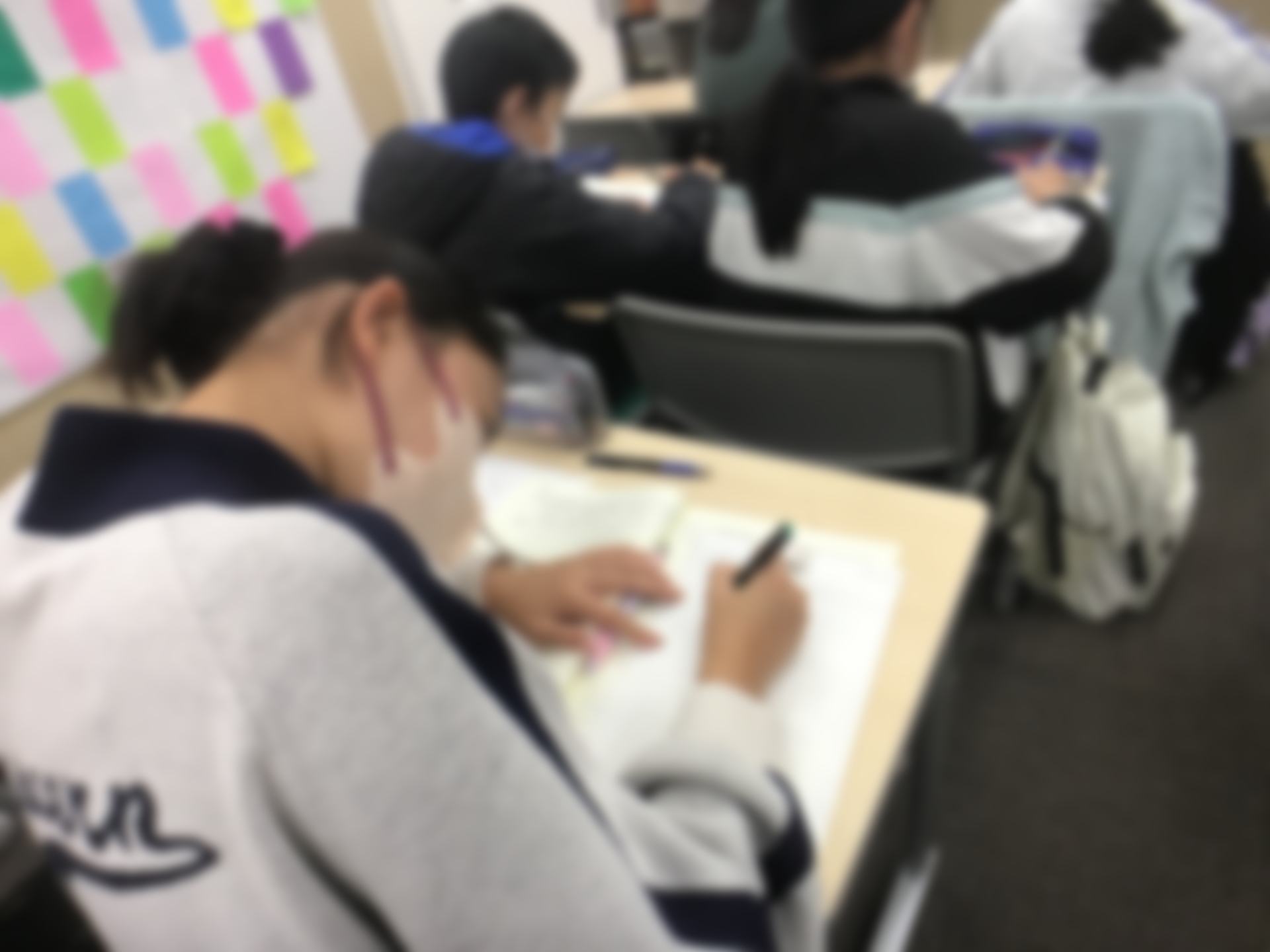 こちらは毎日登塾の火曜の様子です!毎週子どもたちには日々学のパワーアップ版のようなものをやらせています。が、勿論これは入試対策用なので単なるパワーアップ版ではなく入試直結型の私立&適性ダブル対策用プリントです。