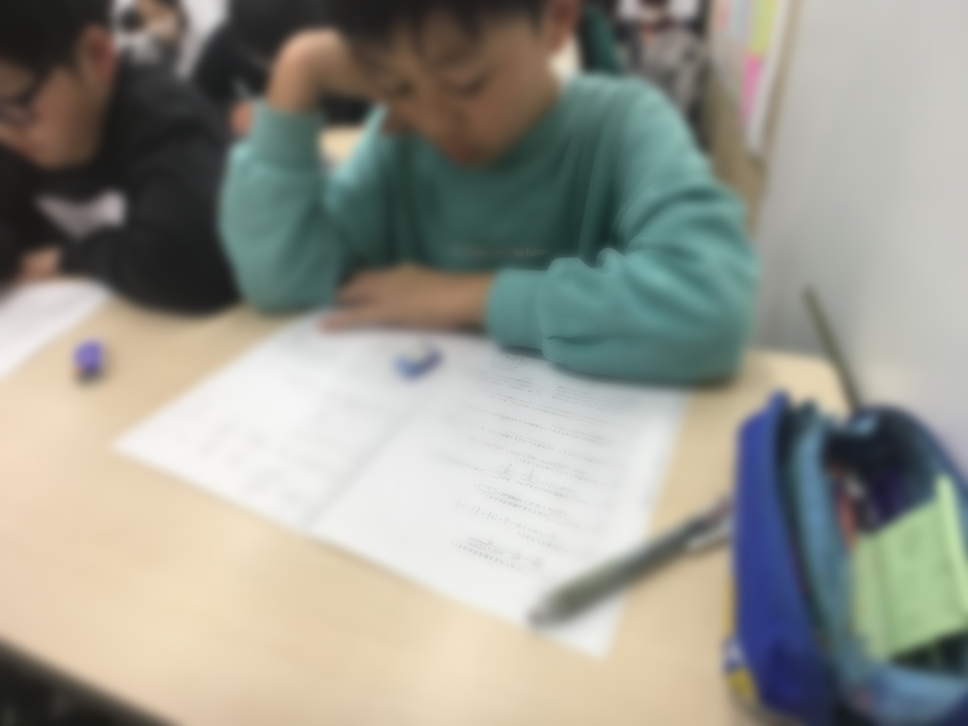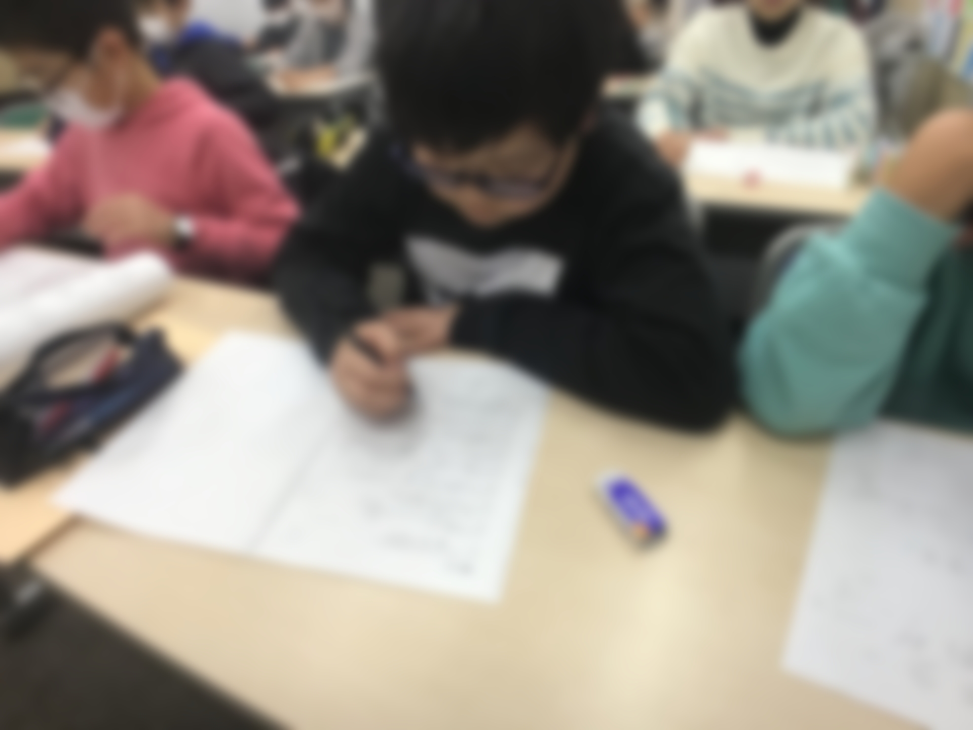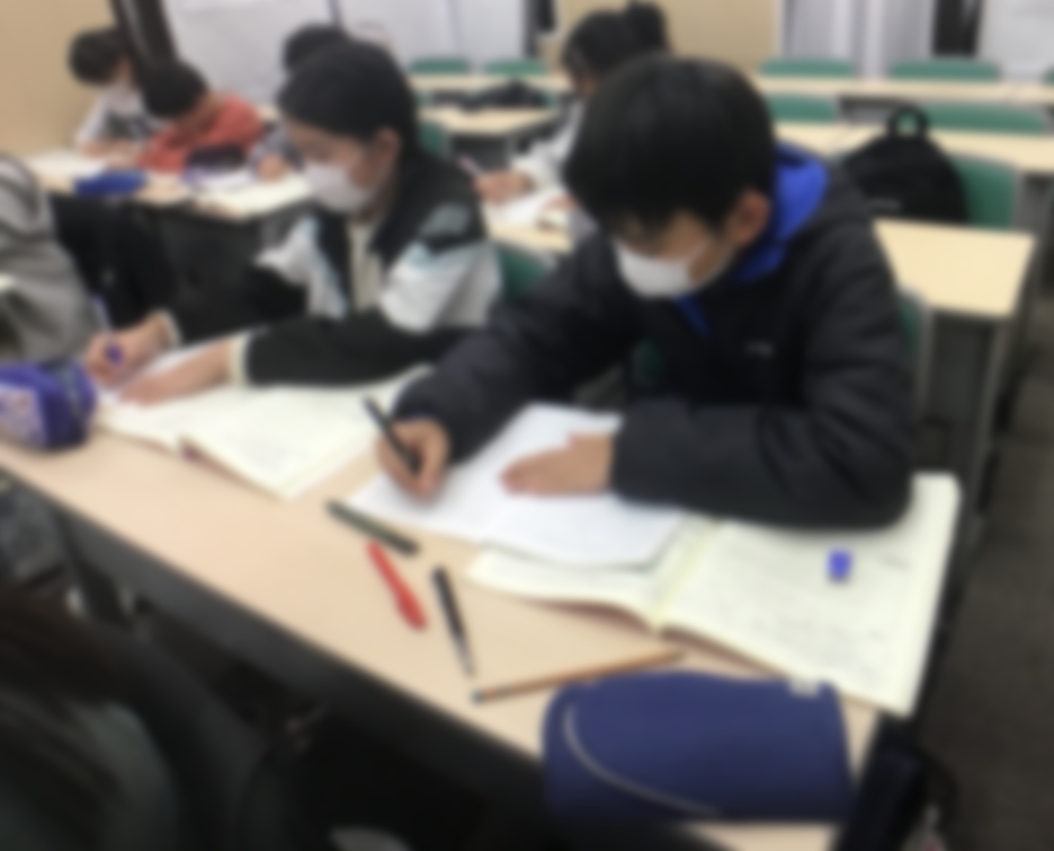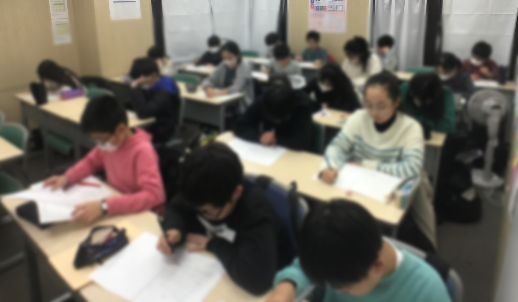 こちらは毎日登塾の火曜の様子です!毎週子どもたちには日々学のパワーアップ版のようなものをやらせています。が、勿論これは入試対策用なので単なるパワーアップ版ではなく入試直結型の私立&適性ダブル対策用プリントです。