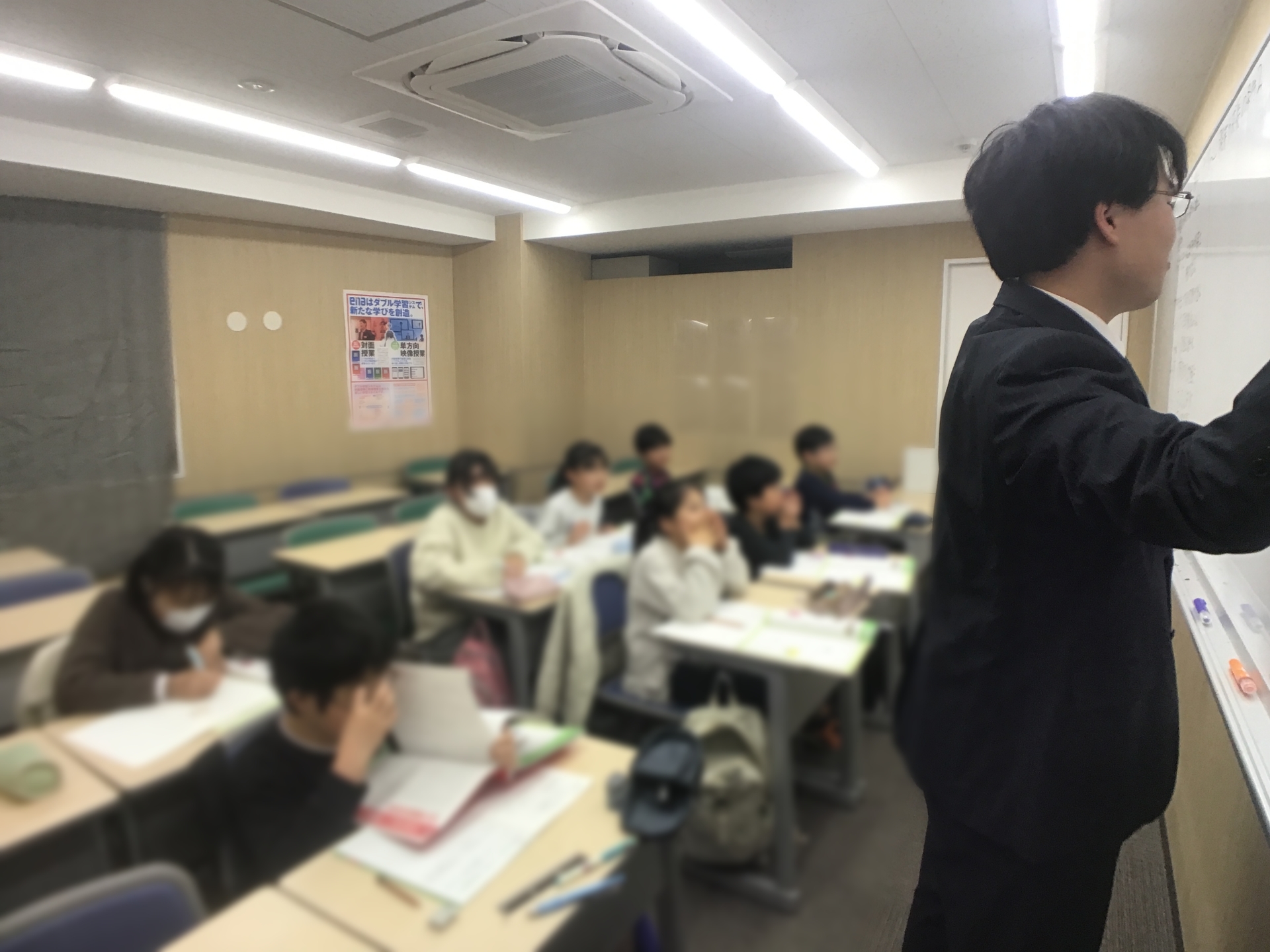 最後の最後に「みんながとっても良く頑張って今日の授業を受けてくれていたから、今日の先生の授業をちゃんと聞いて分かっていれば簡単に解けるこの過去問をやって終わろうっ!」と言ってページを開かせました。