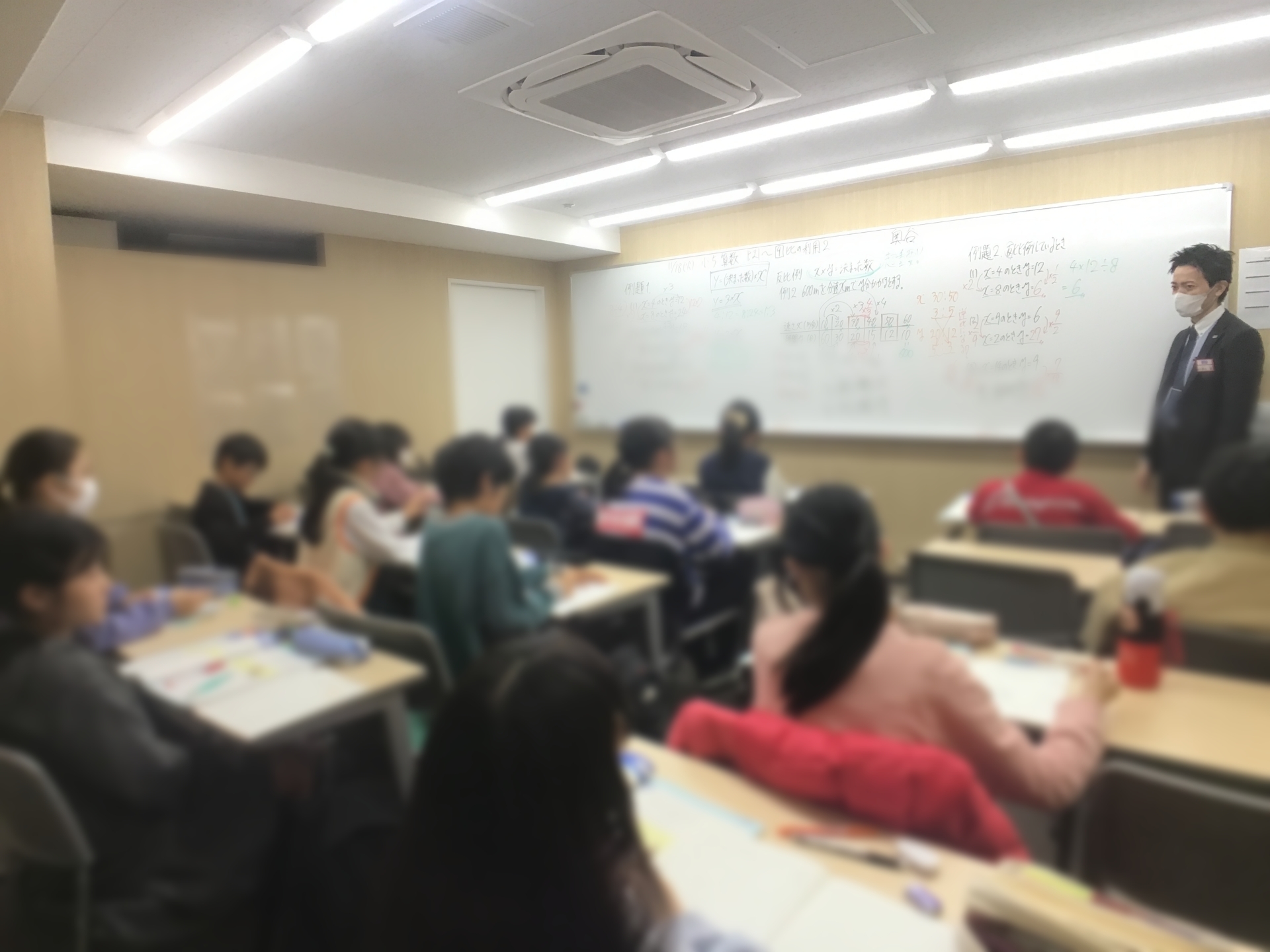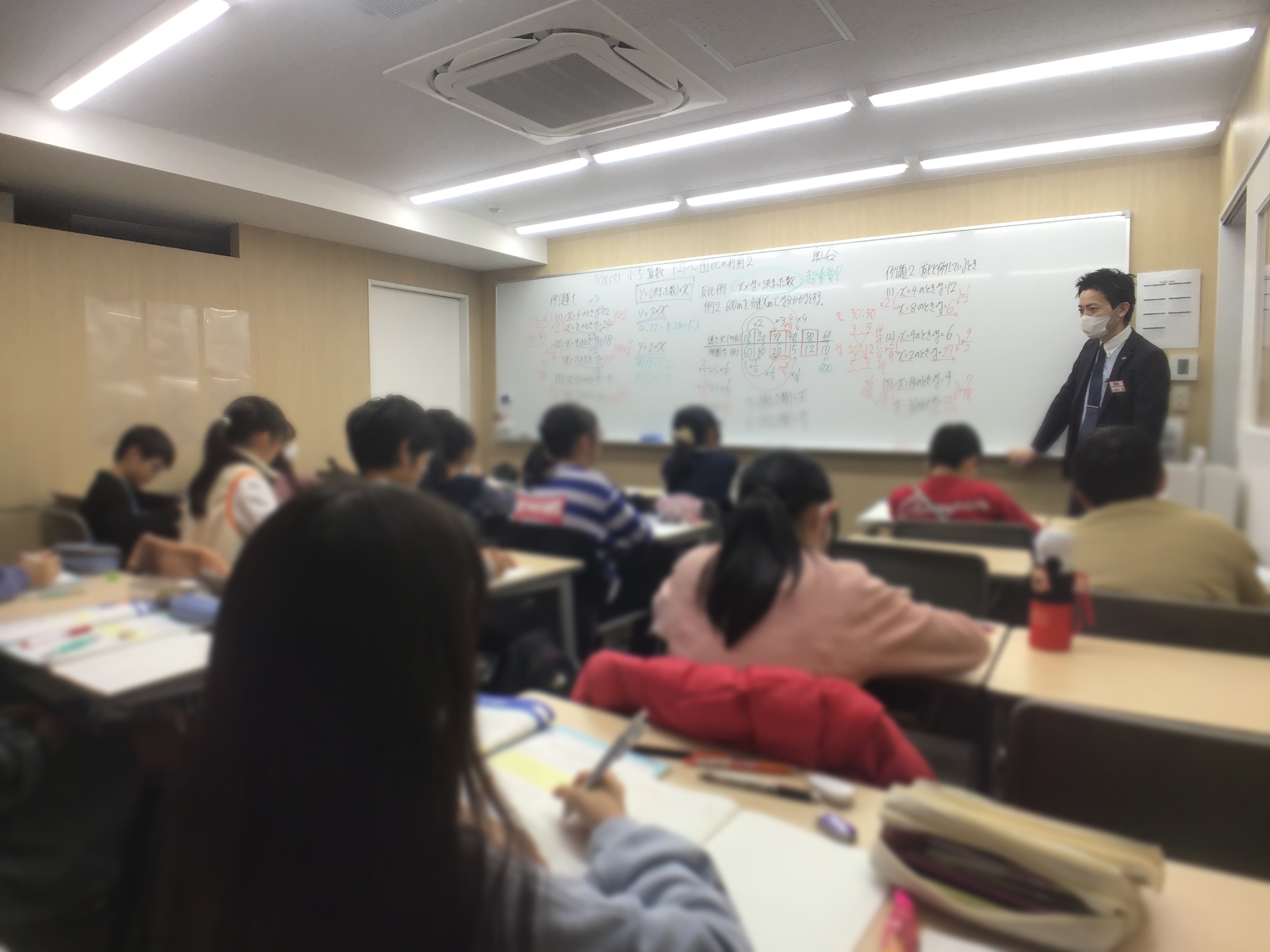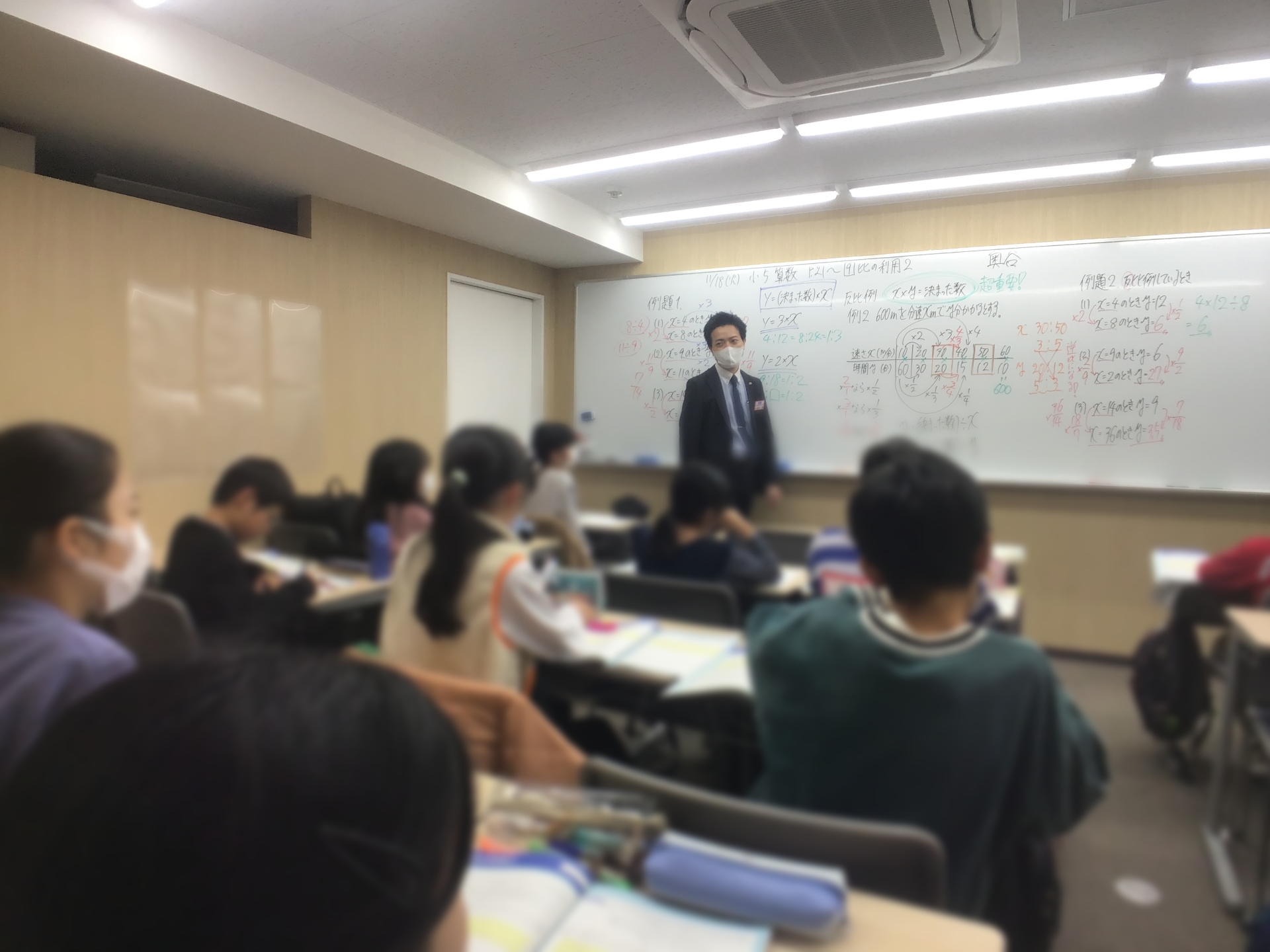 比例はどこまで思考が広がるのか、反比例のポイントと派生事項はどういったものがあるのかということをなるべく時間をかけて話し、子どもたちも真剣に聞いてくれていました♪