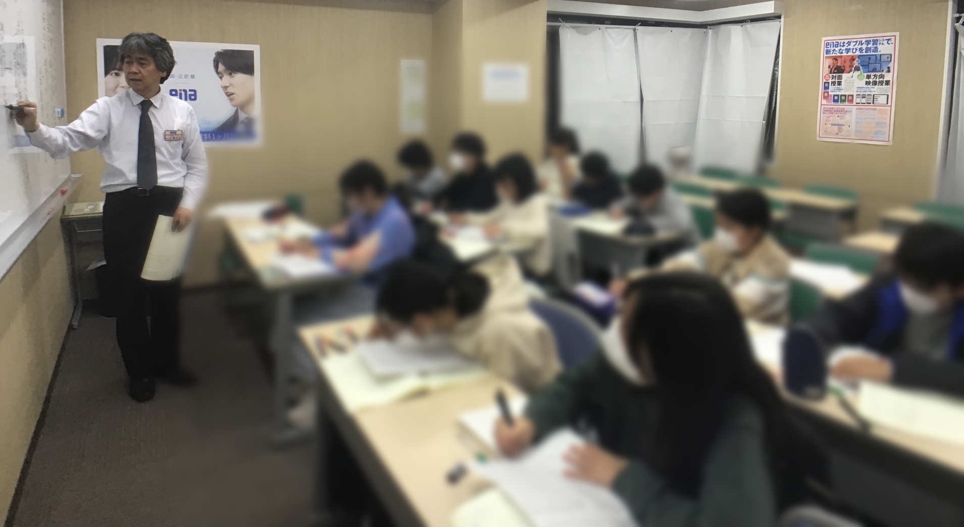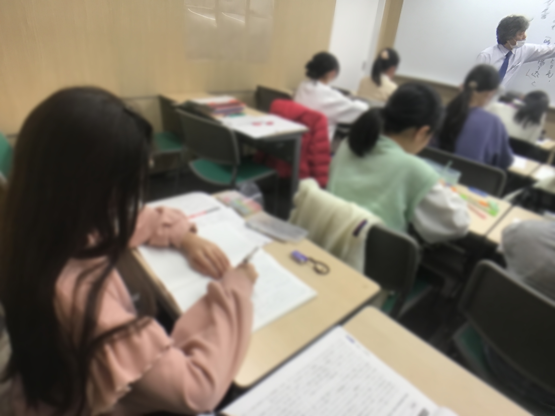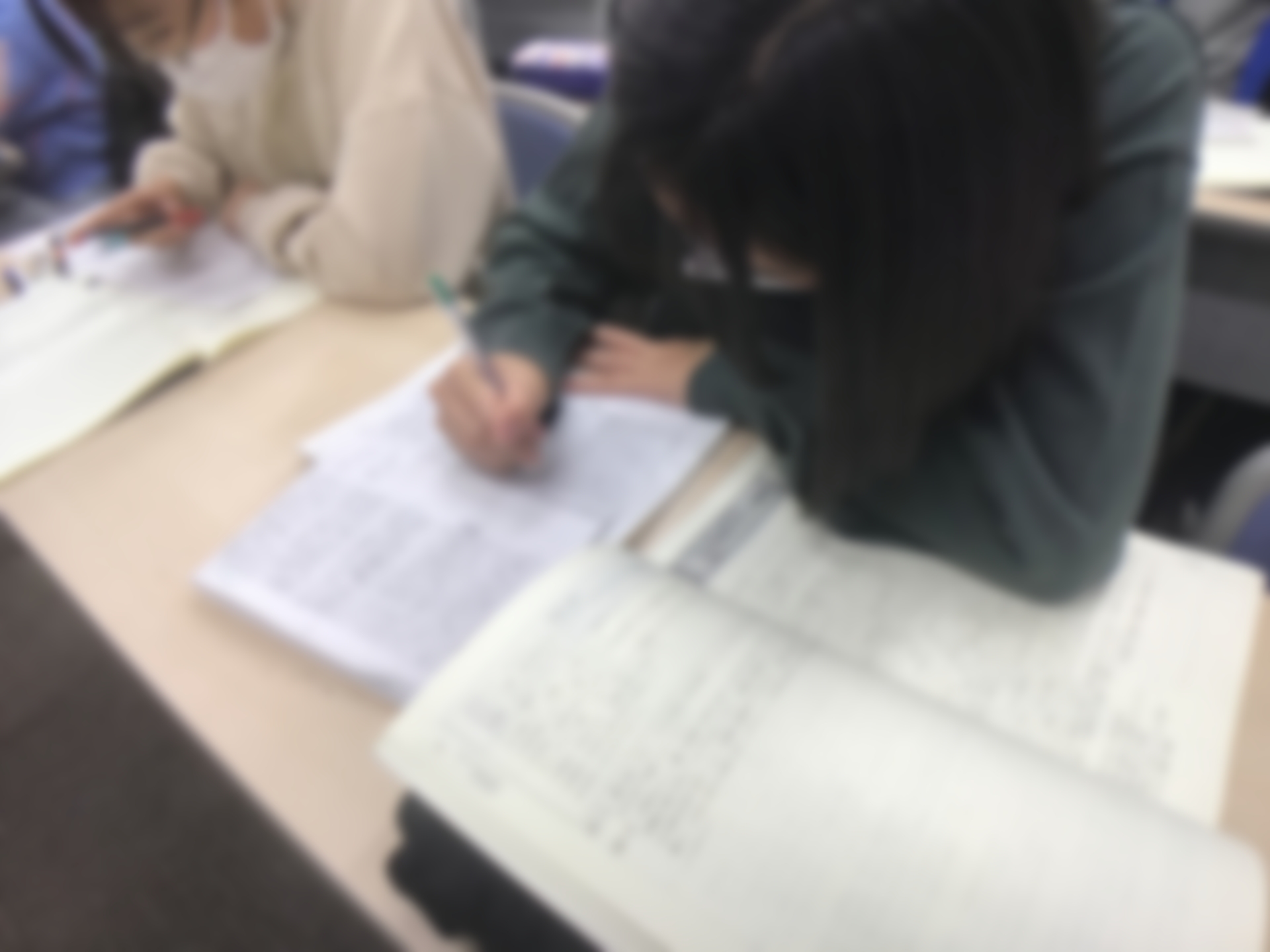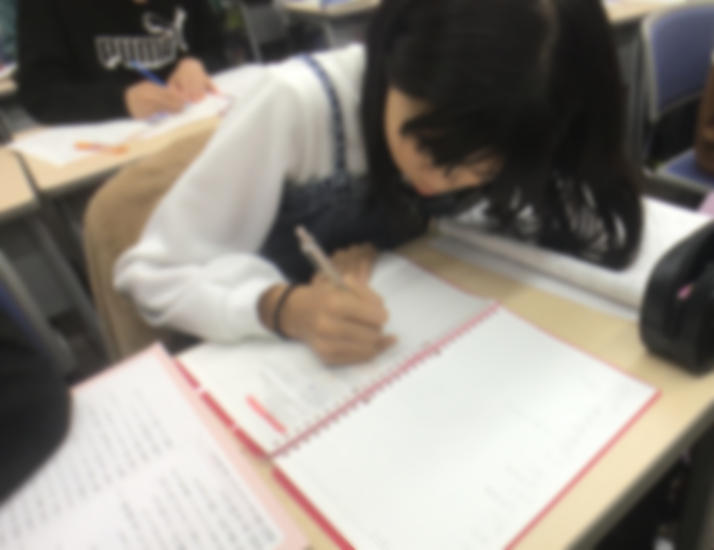 また、座る姿勢・授業を受ける姿勢から指導していますので、自然とこうなります。