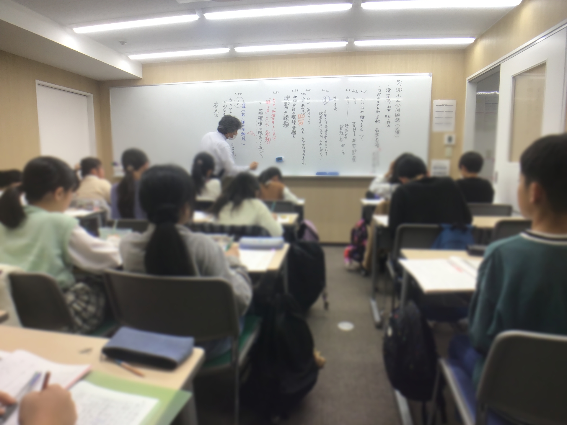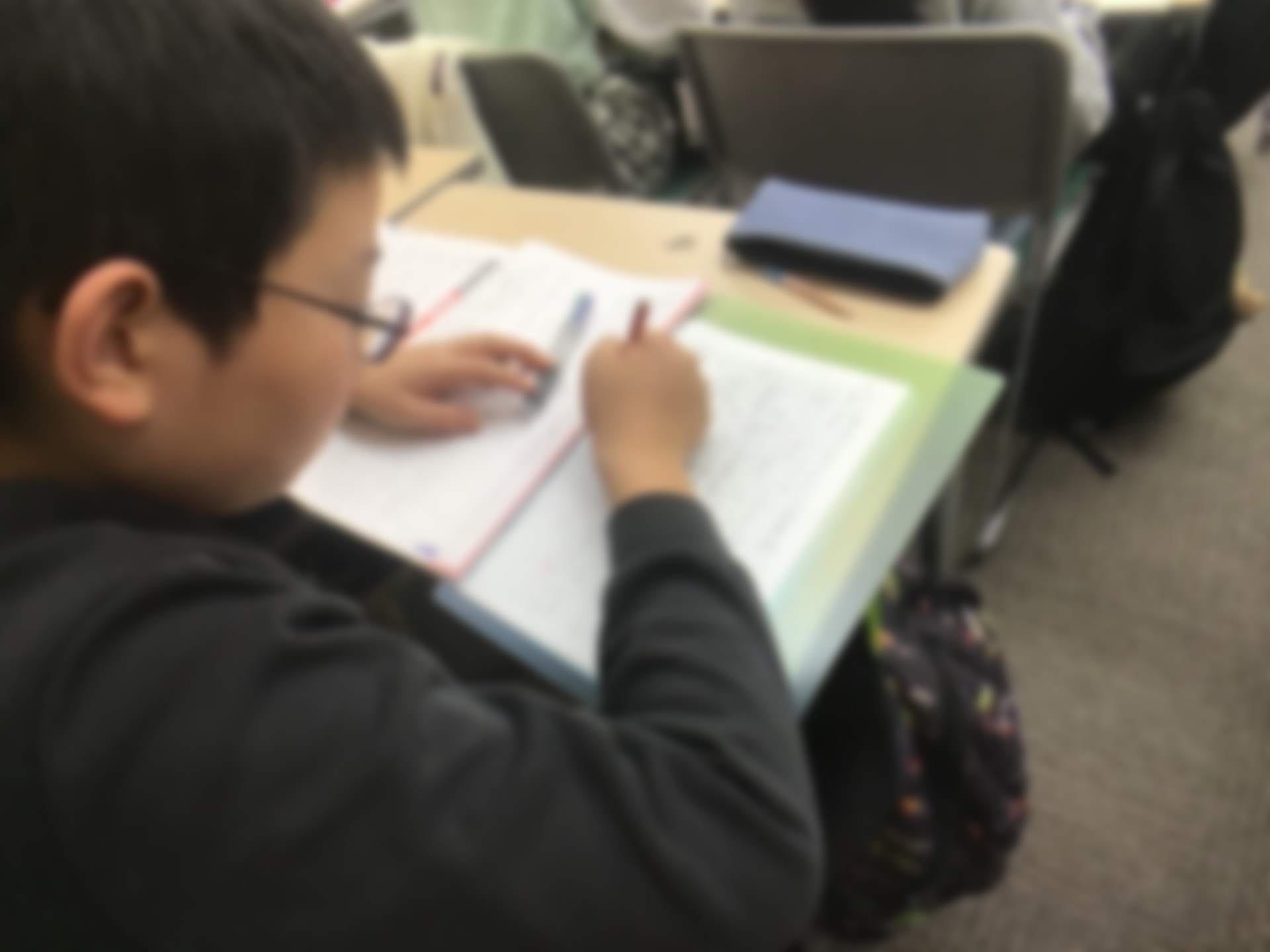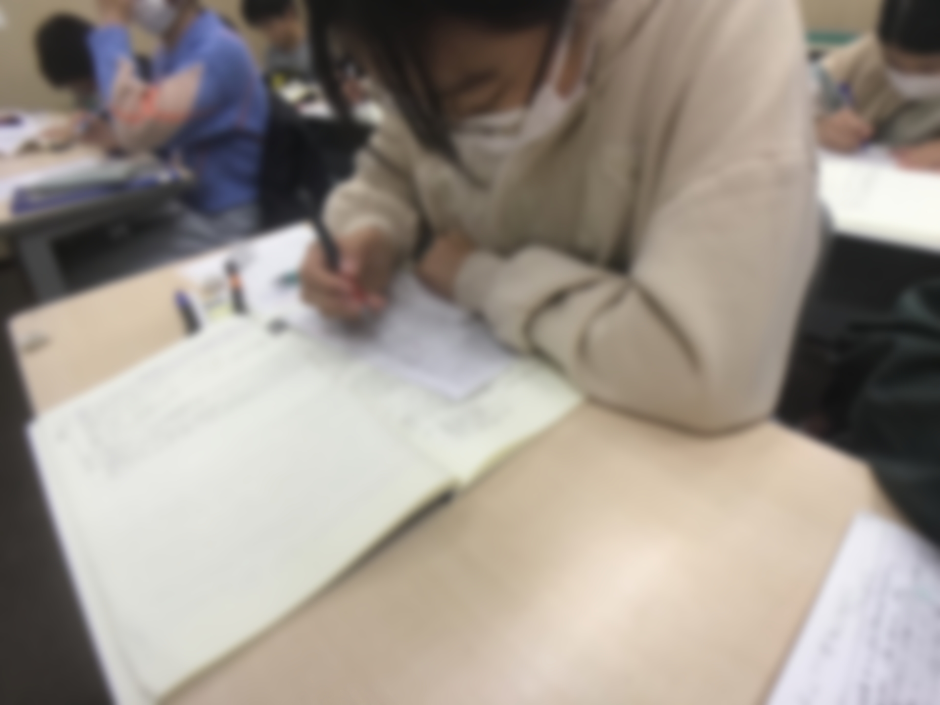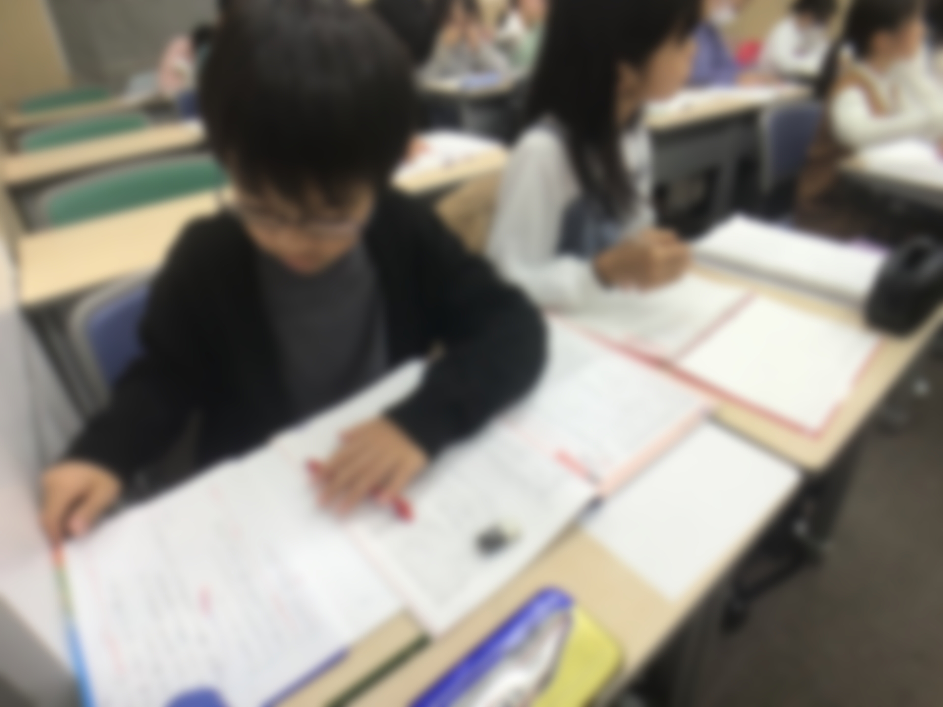 ノートにも相当びっしりと書いています。毎日登塾でも過去問演習やプリント演習をこれでもかと繰り返す小学6年生です。ほぼ全員が本当に毎日登塾しています。