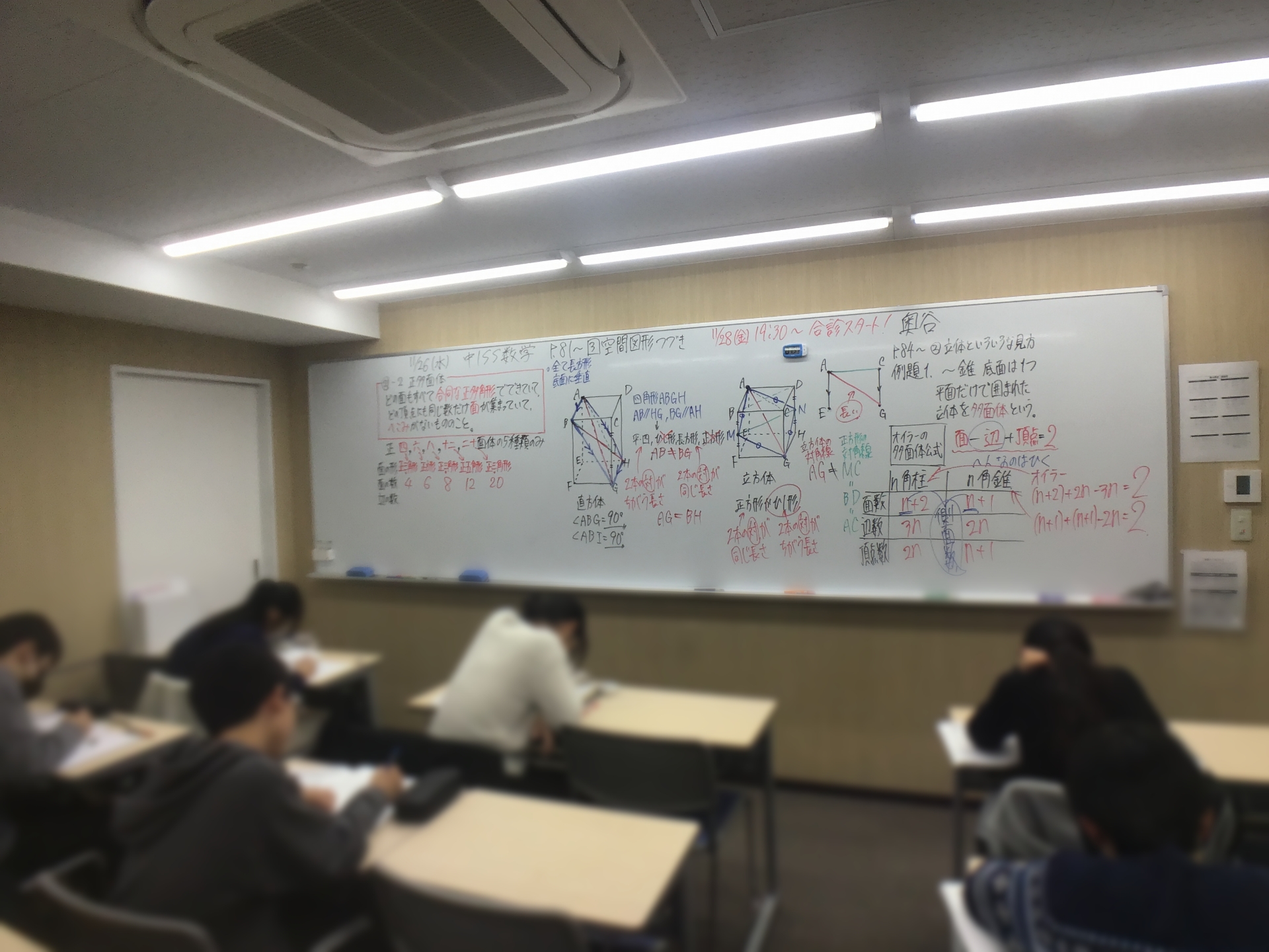 中学1年生は特に立体図形での学習量が通塾というものをしているかしていないかで大きく差が出ます。冬期講習会では1年生の最重要単元を全部扱います!!!