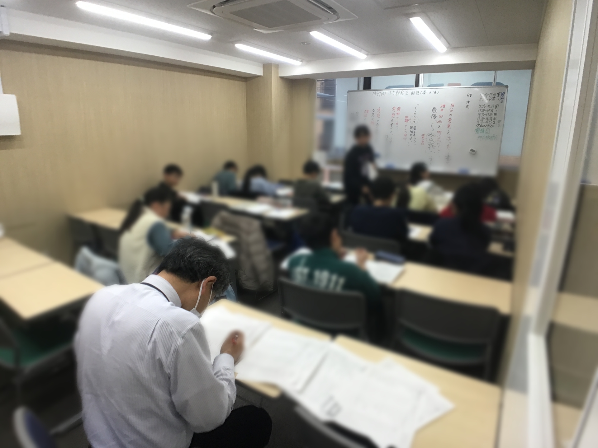 小学5年生は授業中に必死に記述を書き、添削を受けています。