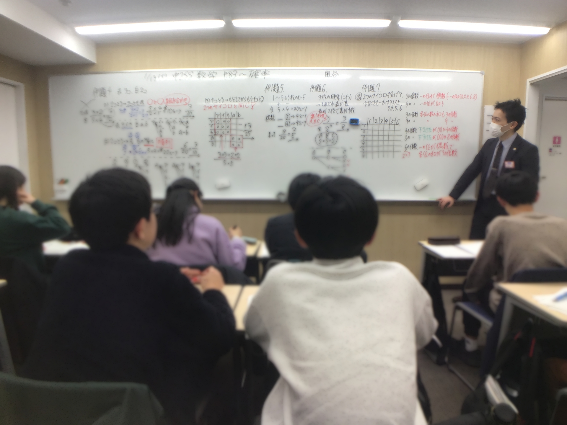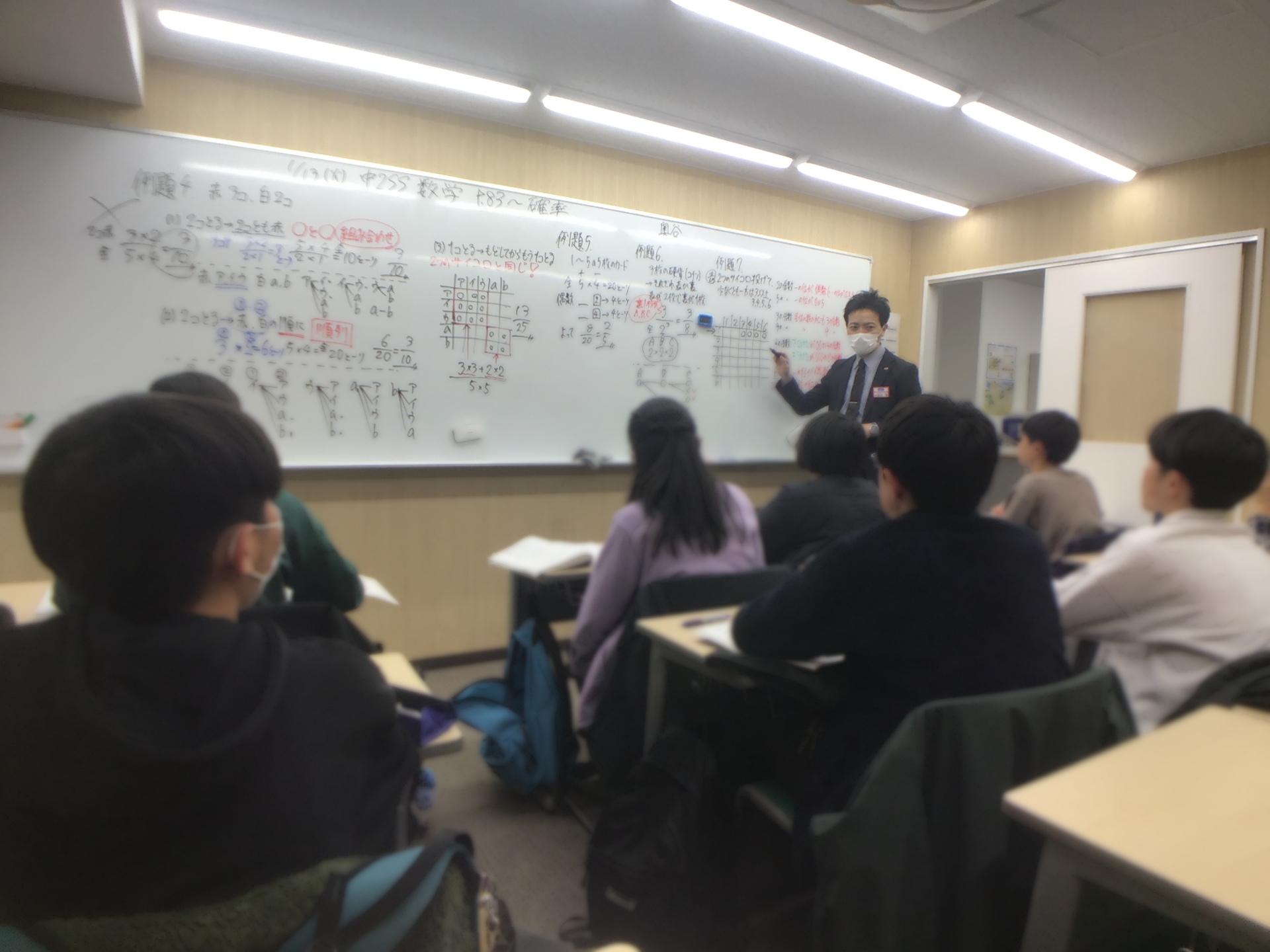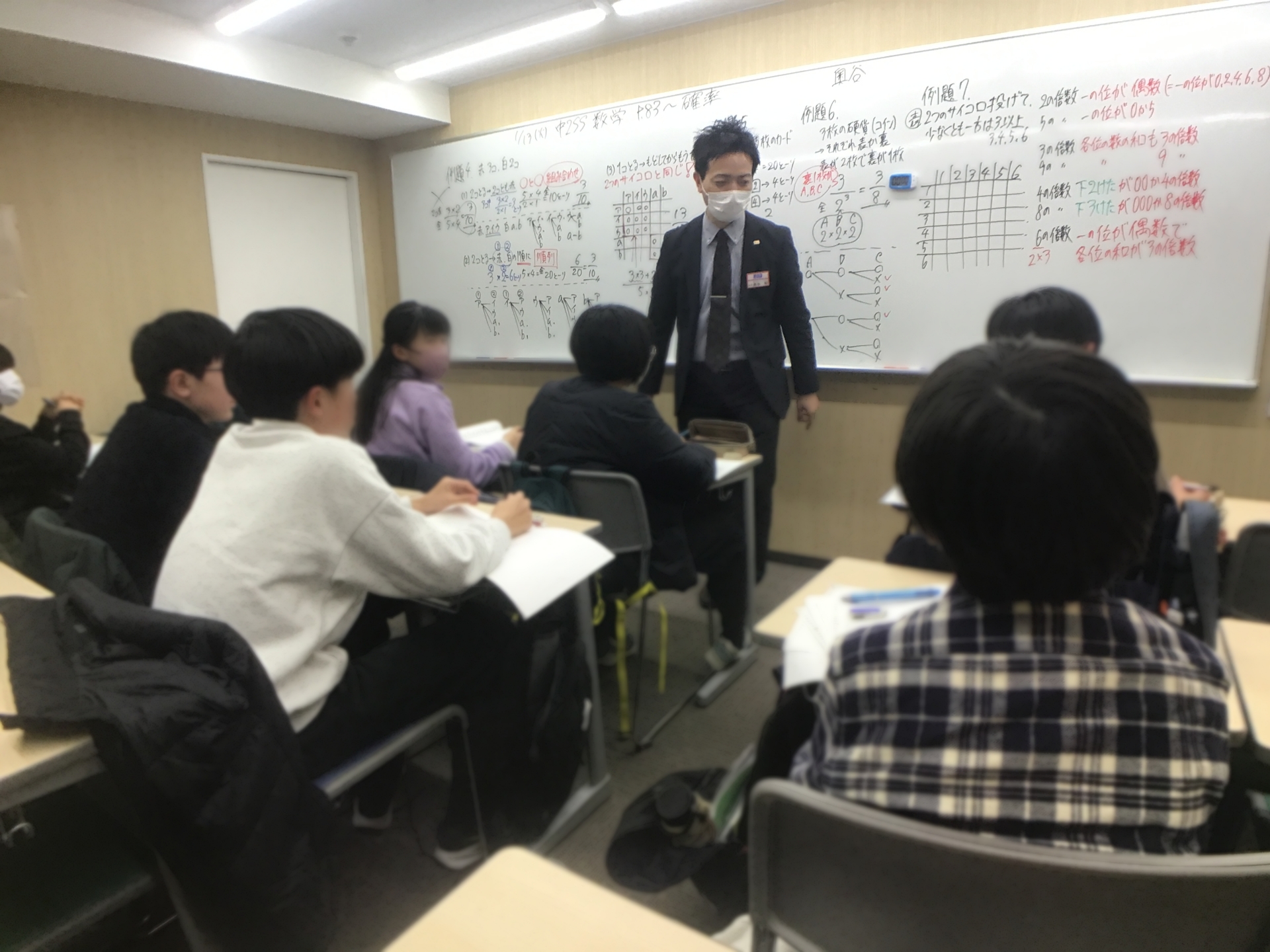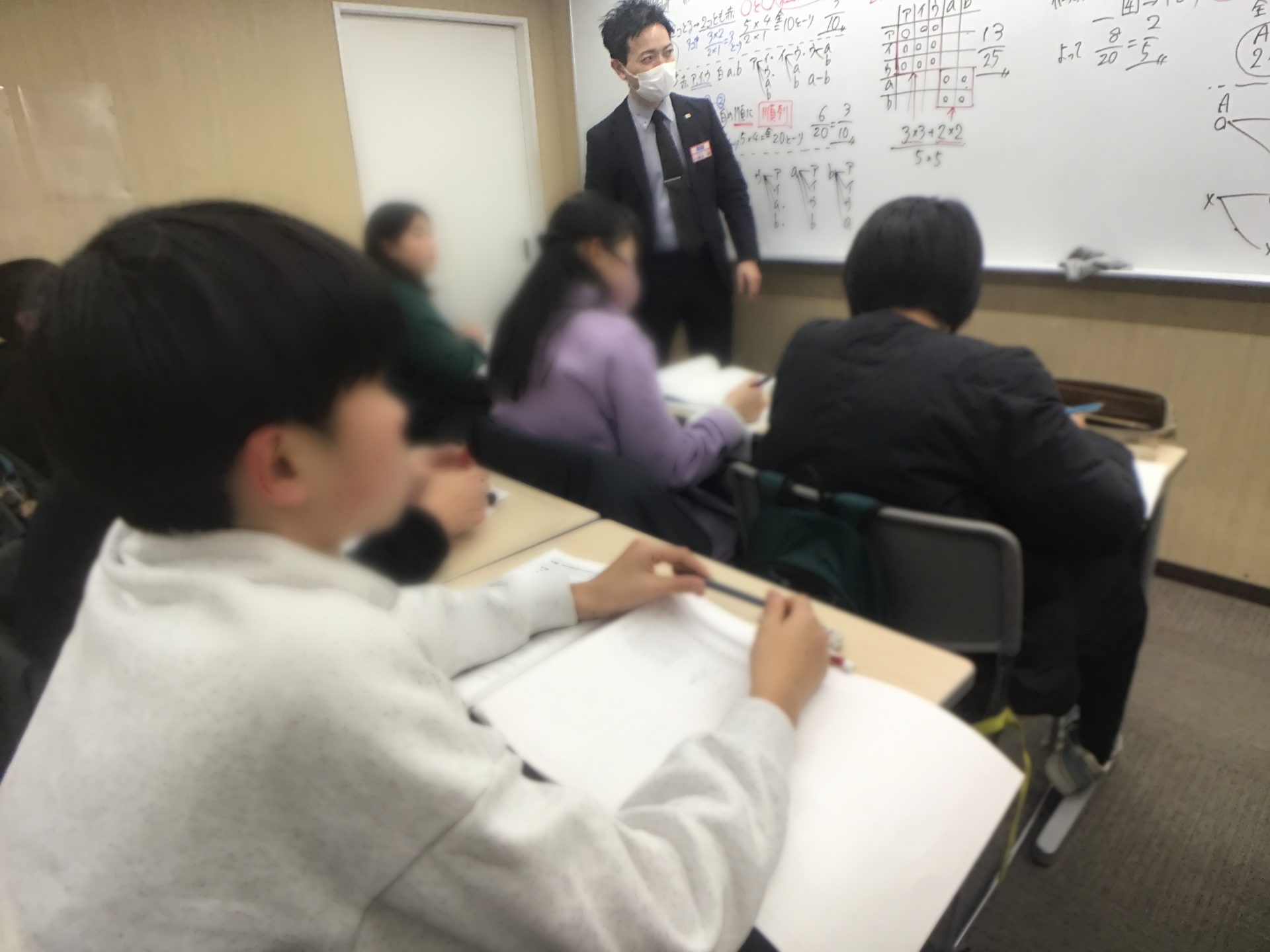 図形の証明や面積比の内容も一通り終え、冬期講習会では最高水準コース専用教材を用いての最難関レベルの徹底補完をし、その上で確率の肝となる部分を先週扱いました。