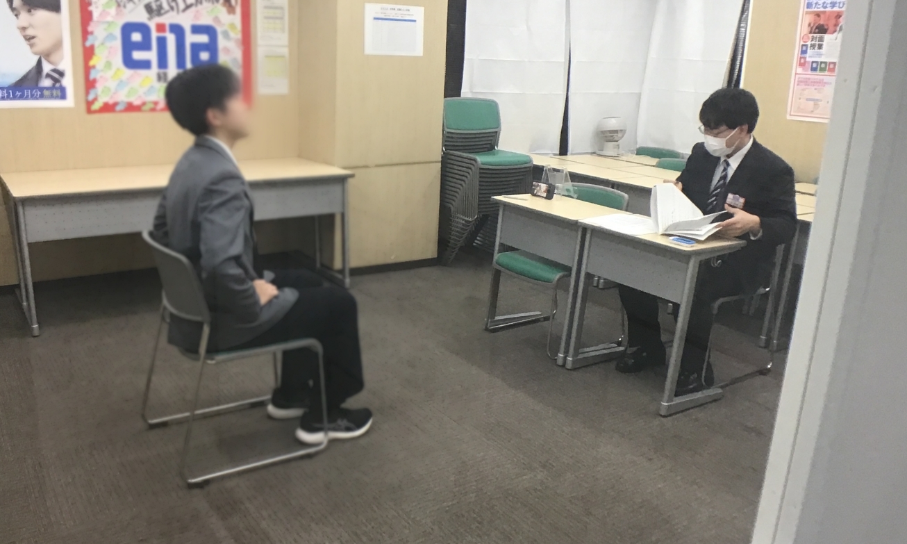全体説明をした上で個々に呼び(例えば私ならena経堂ではない子どもたちを)面接練習しました。