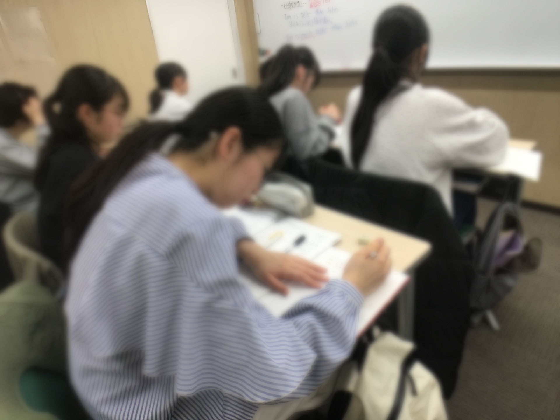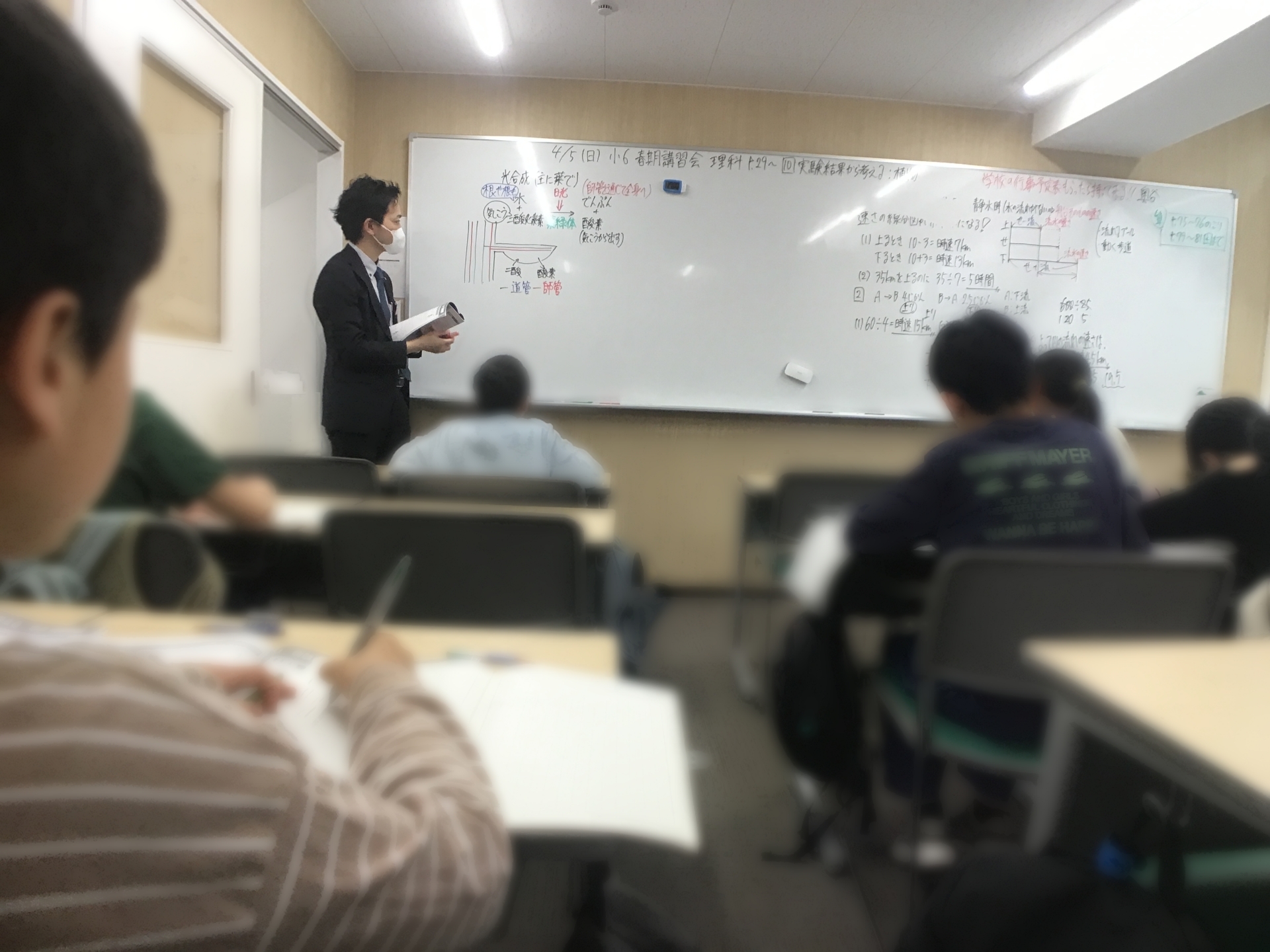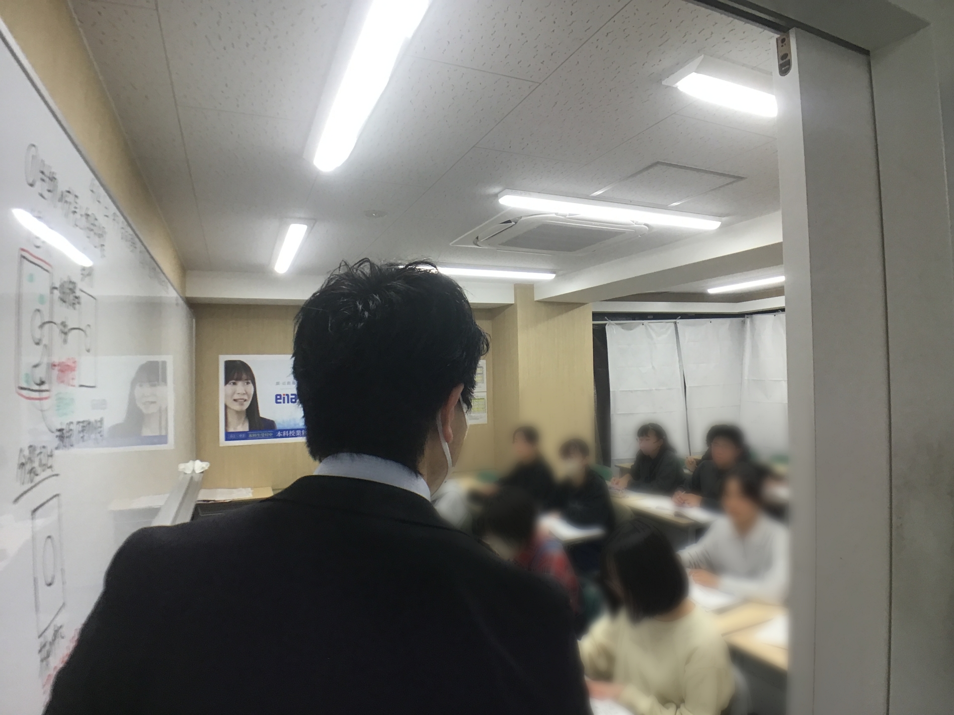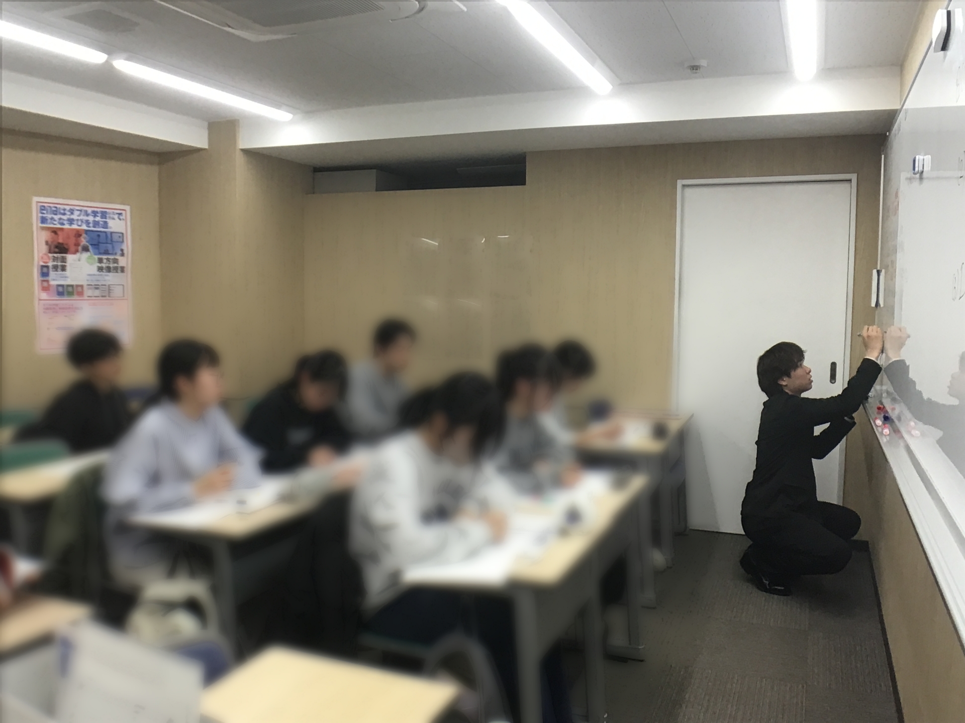 実は担当がしゃがみながら、背を向けながら、板書しながら、説明しながら授業をしている場面でした。