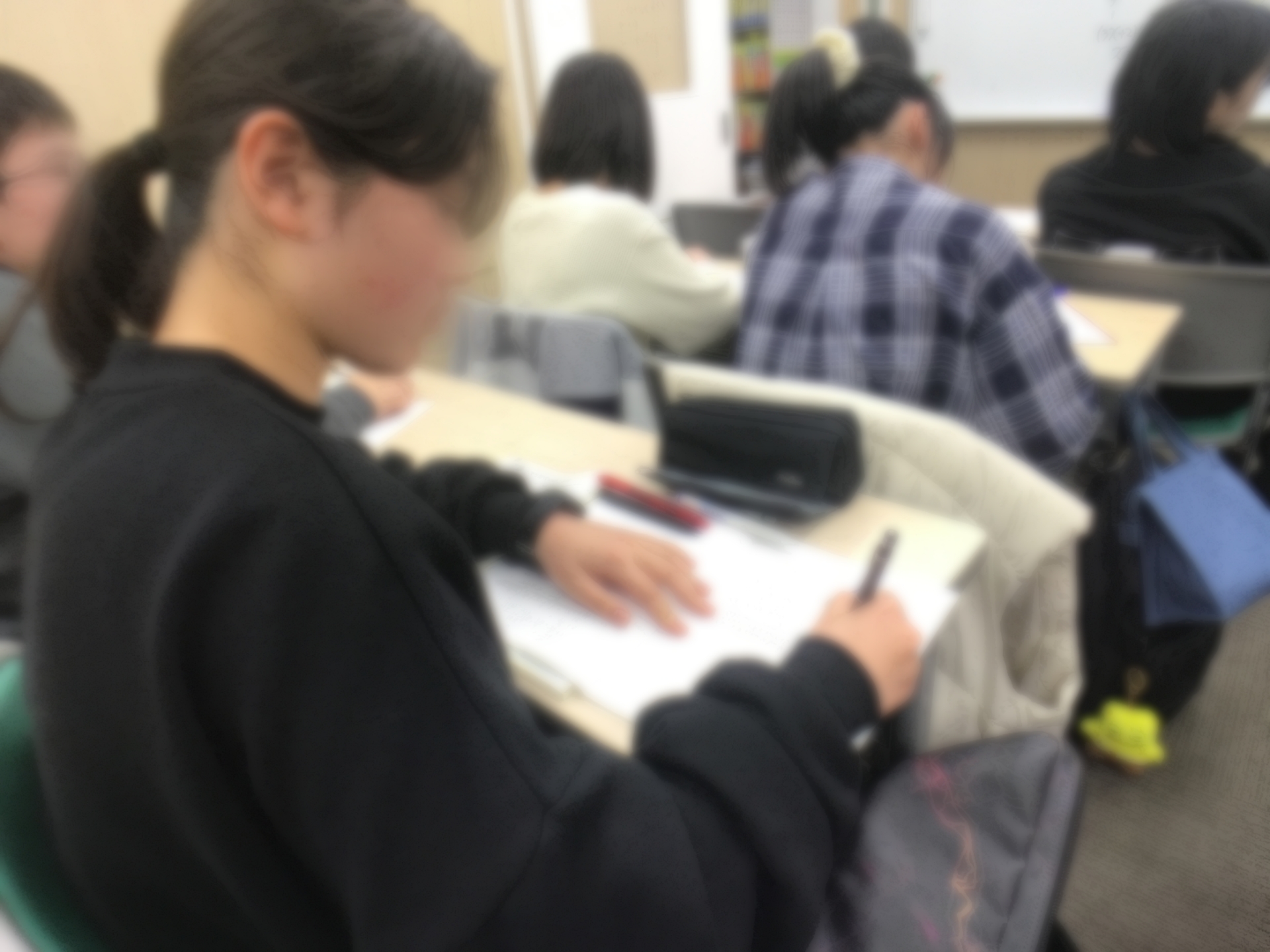 常に見る・聞く・書く・解く・考えるのどれかを授業中はさせ続けさせています。ですので気を抜く子どもはena経堂では皆無です。