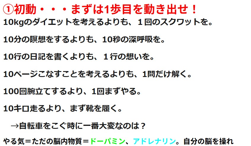 ・初動・環境・習慣が大事だと認識できた