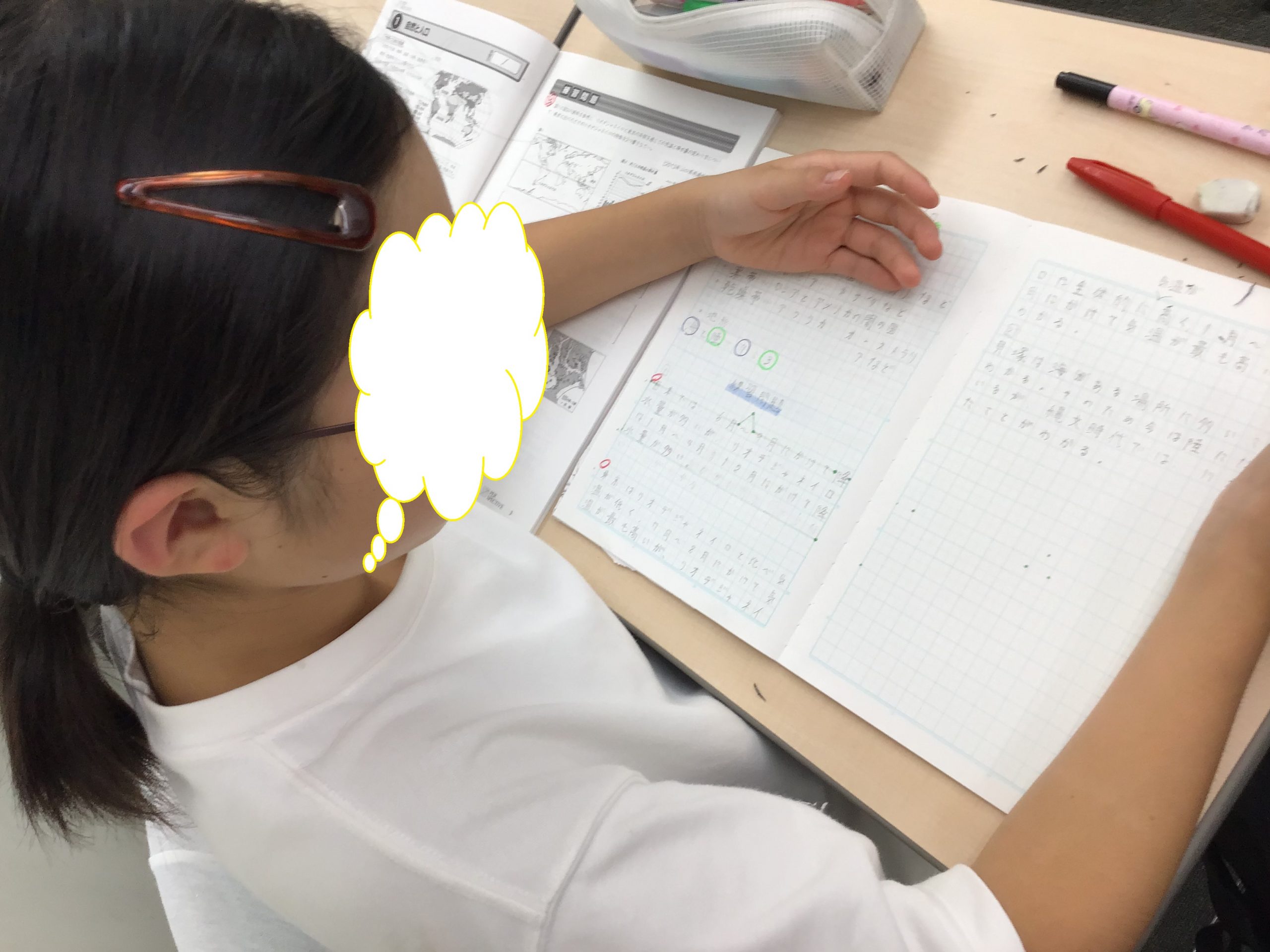 (^^♪ 授業がすごく楽しかった。大地の変化や地層、天気など基本的なところを最初に説明してくれたのですごく助かった。一番苦手だった大地のところが少しずつ解けて、解けていなくても解説を聞いて理解できるようになったのが嬉しかった。板書も見やすくて、この合宿の中で一番印象に残った授業でした。
