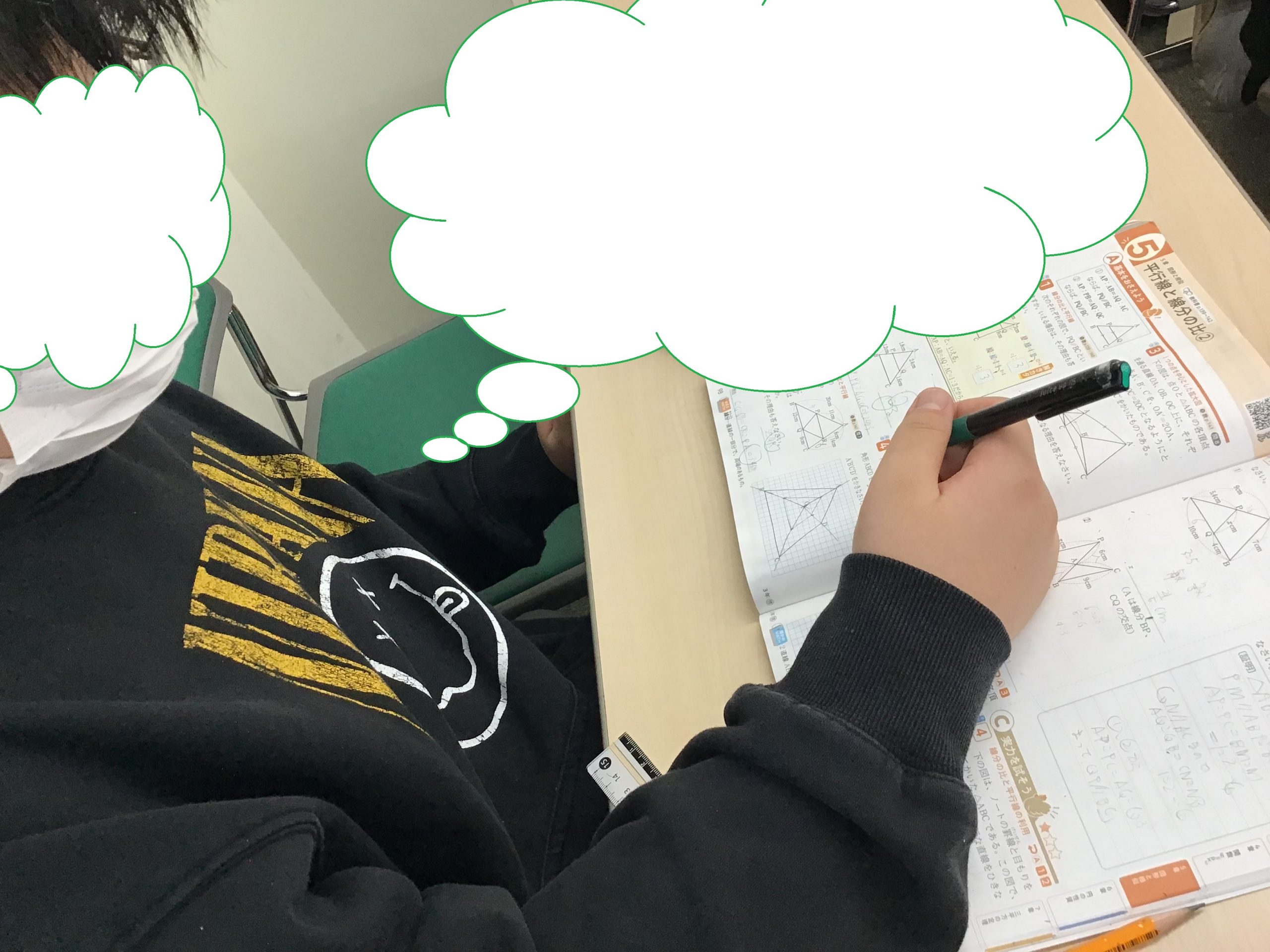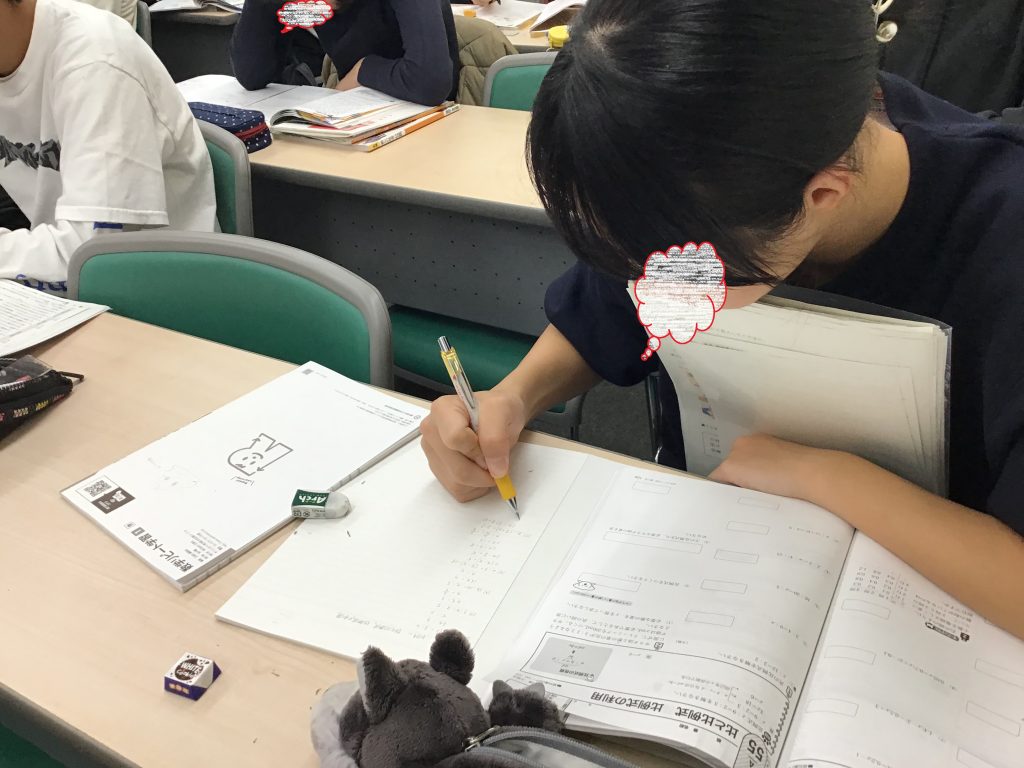 集中することができました。数学のワークが終わったのでよかった。質問がたくさんできた。集中した成果かC問題が90%の割合で解けるようになった。