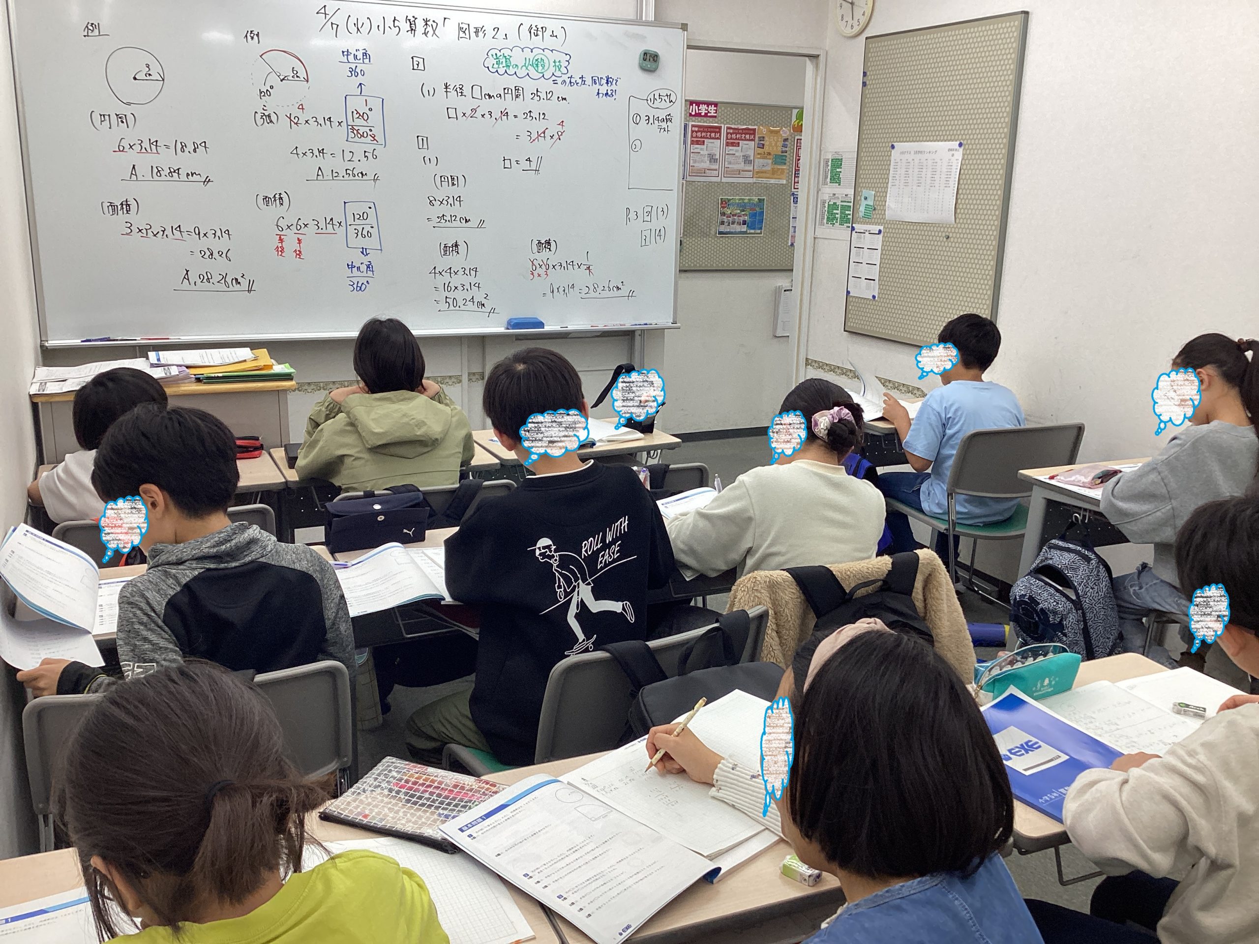 小5算数は円、おうぎ形。3.14の段は来週暗記確認テストをします☆彡全員満点なるか!?