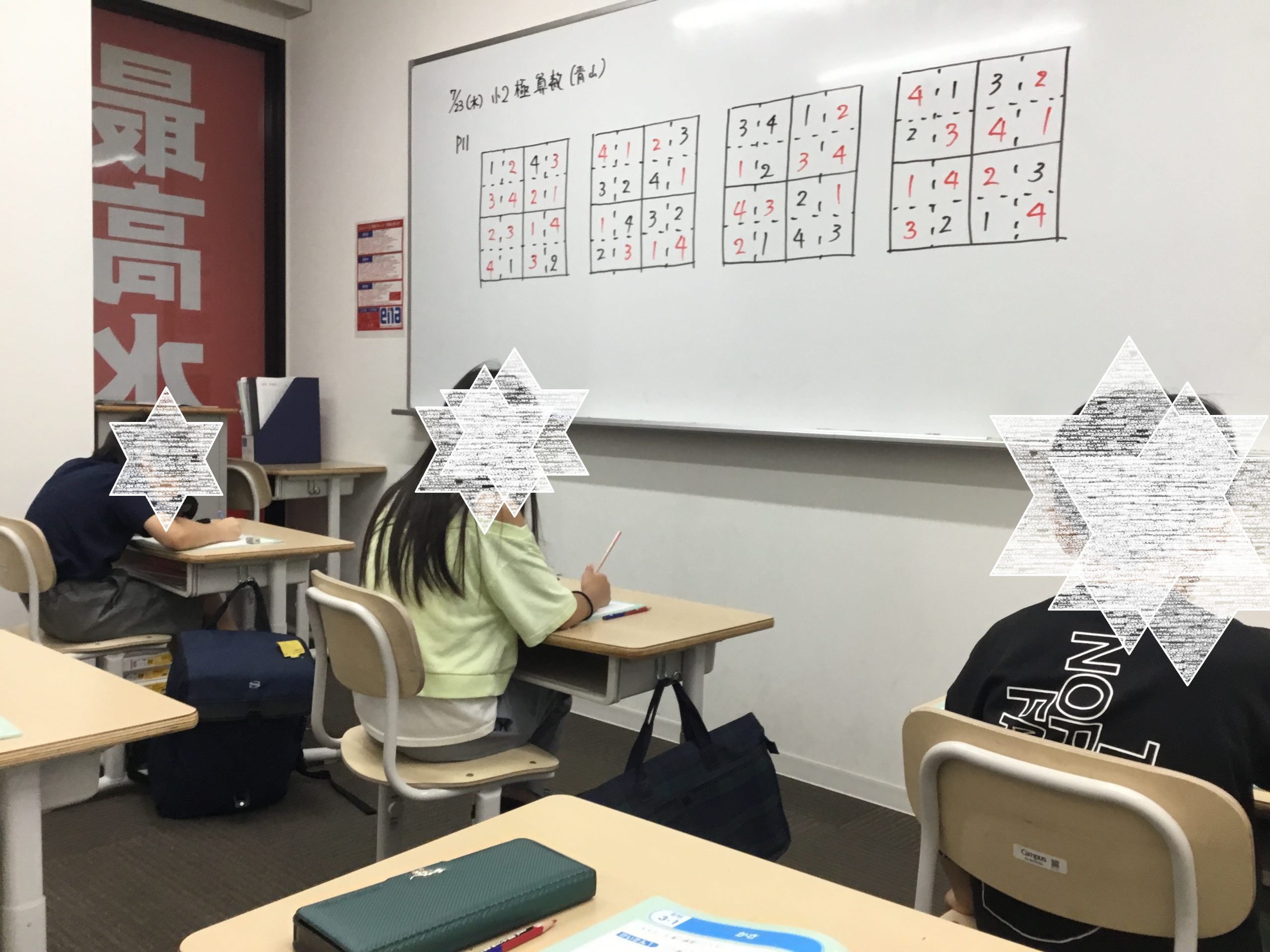 ▼中3数学では過去問を解く準備を着々と進めています。みんな真剣な表情です!
