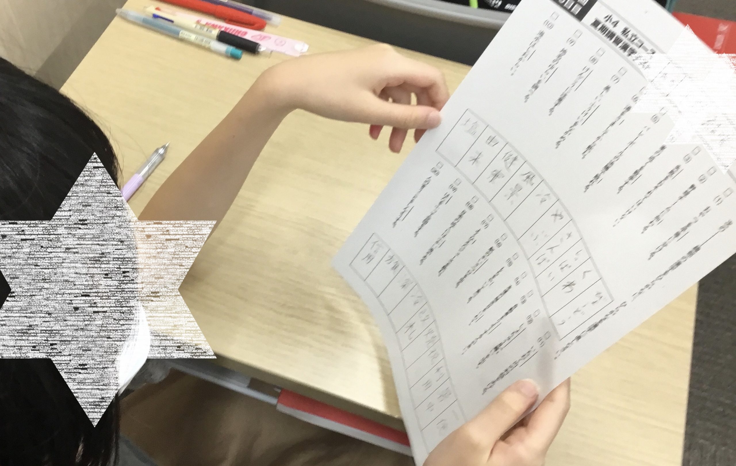 ▼毎回の小テスト。すべての回で満点を取るために、見直しをしながら進めます。