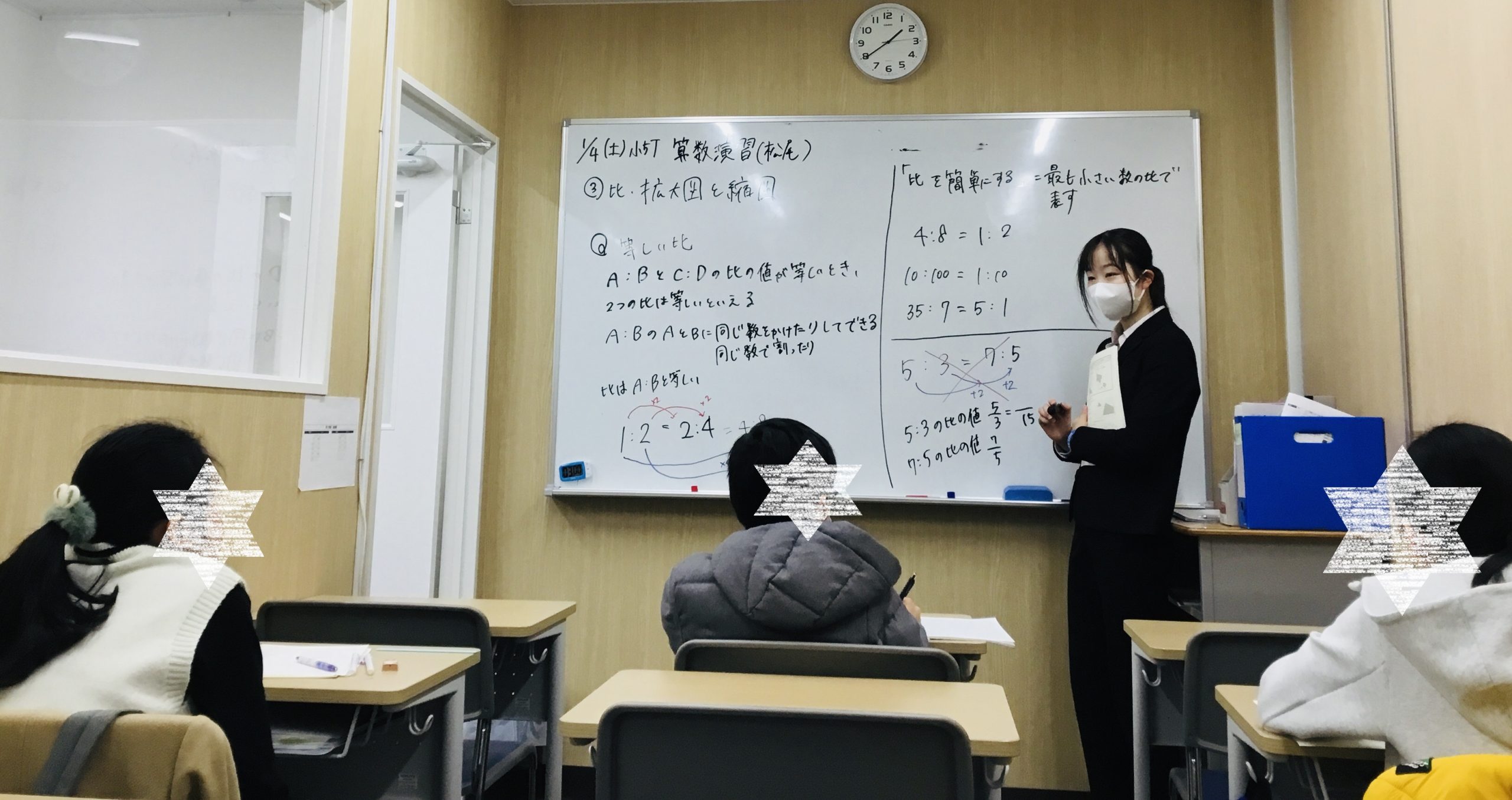 ▼こちらは小学4年生の算数の授業です。来月からは小学5年生としての勉強が始まります。2月からは準受検生!身が引き締まります。