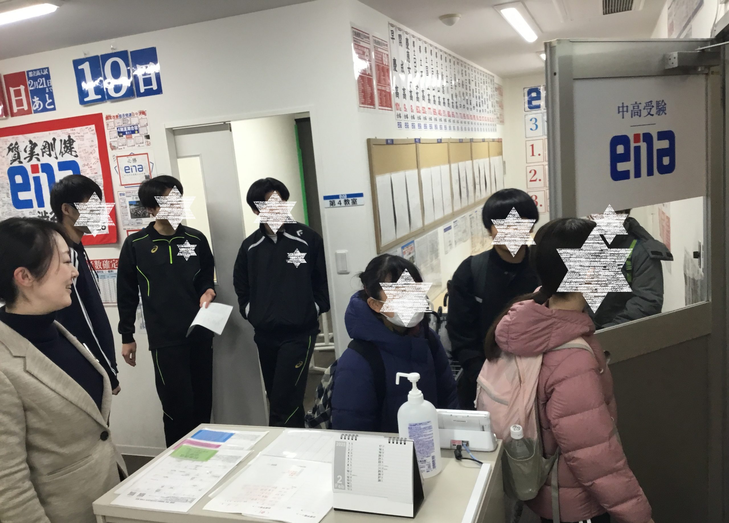 ▼2月2日に気合を入れて校舎を出た受検生たち。中学生もその姿を見送りました。