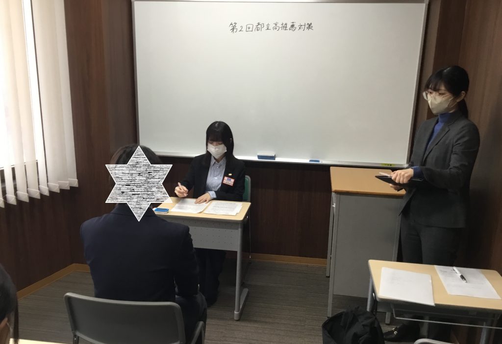 本日は中3の都立高推薦入試対策として、個別面談の練習を実施しました。