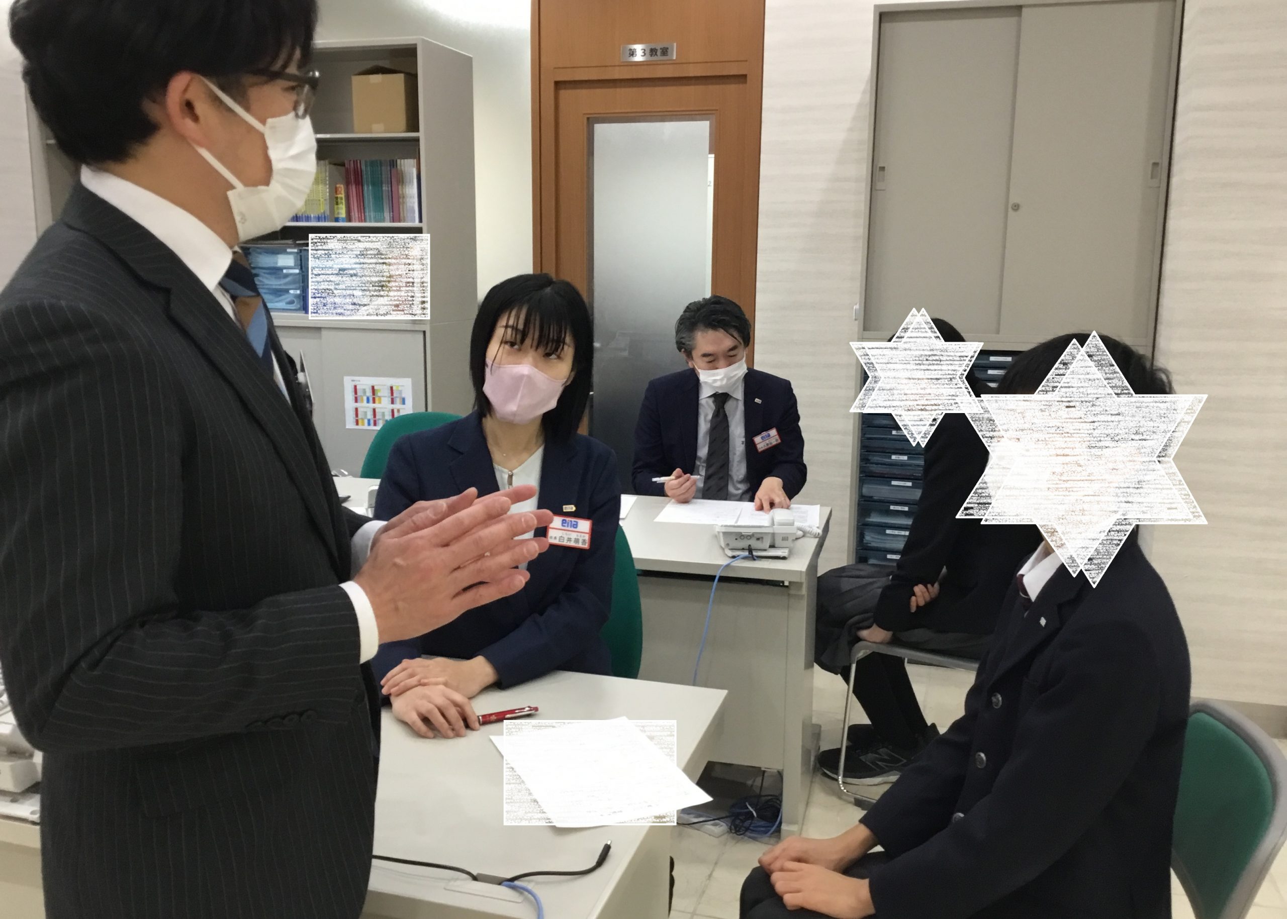 ▼待機中はほかの生徒のやり取りも聞いて自身の材料にしてもらいます。