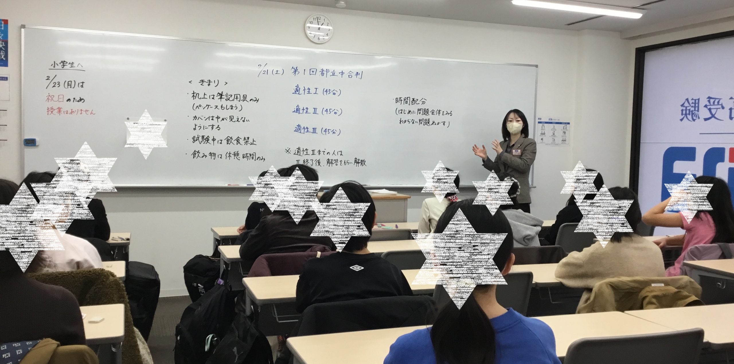 2/21に中学生たちが会場で頑張っているとき、校舎では、新小6の都立中合判がありました!