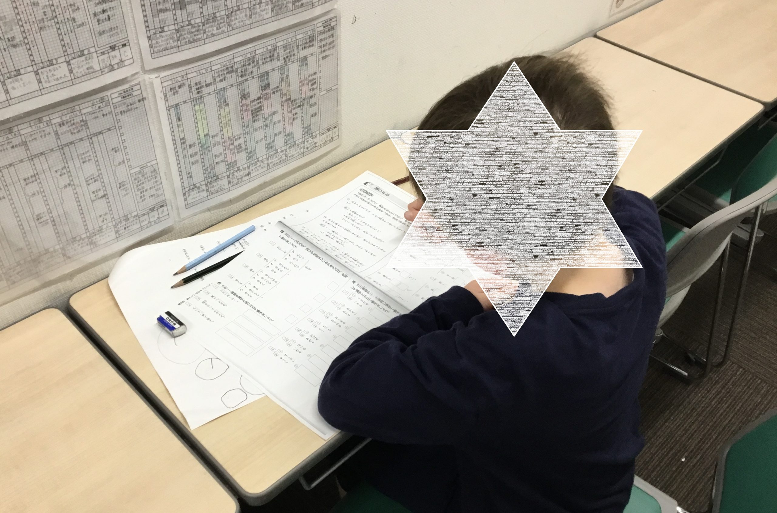 ▼小3極はテスト!みんな素晴らしい集中力です。時間いっぱい問題にかじりつくぞ!