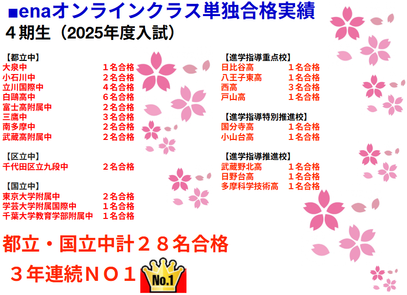 【過去5年間合格実績 3月25日】enaオンラインclass通信#1861