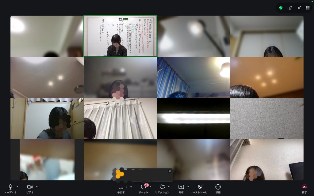 授業ではチャット機能を活用し、みんなと解答を共有しながら授業を進めています。