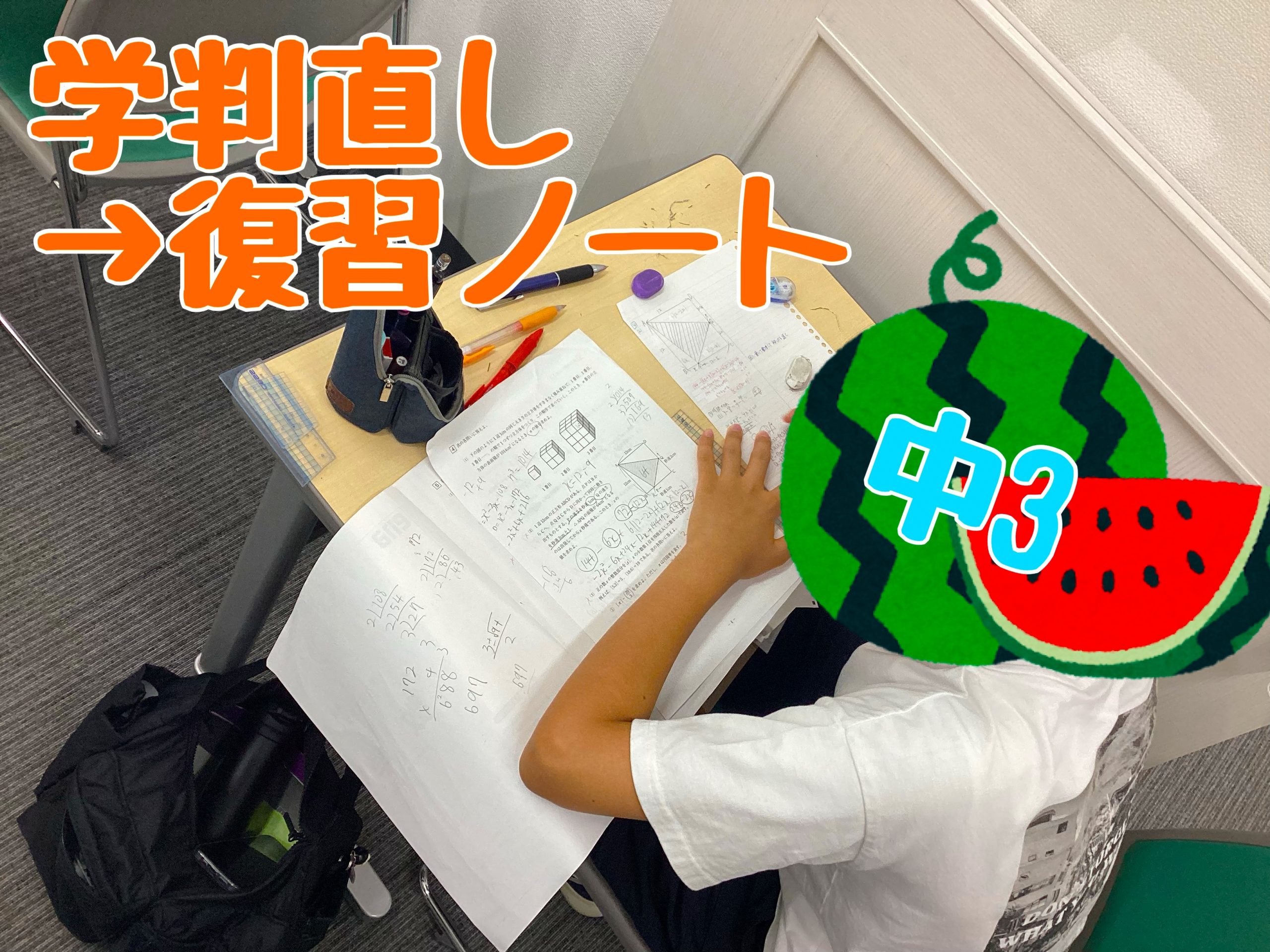 中2 漢字テスト 計算テスト 英単語テスト 最終日に夏期学判