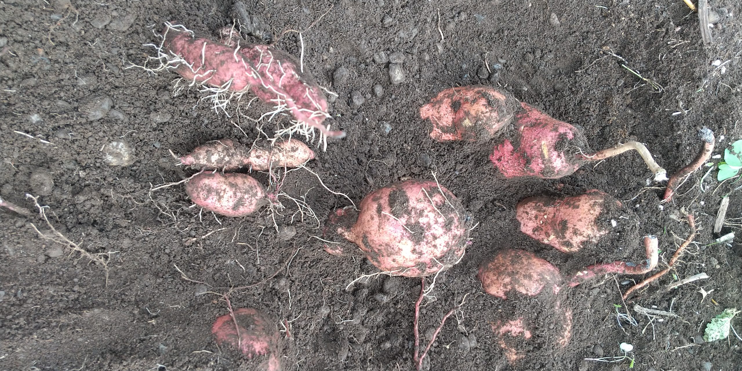 土掘って、芋と一緒に指洗う。
