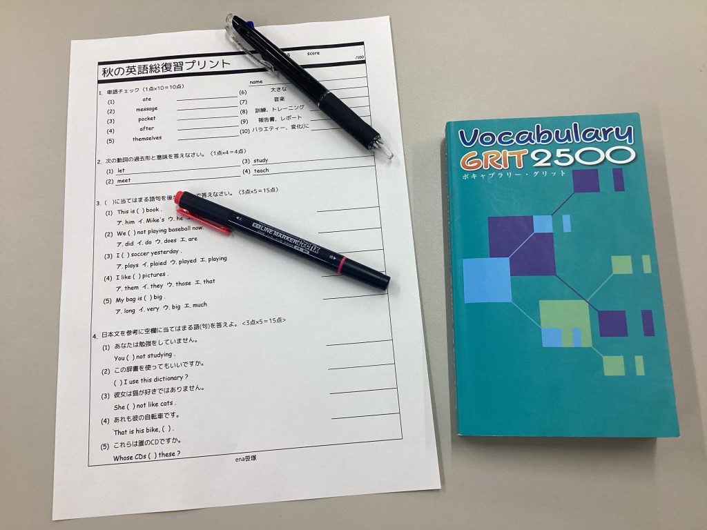中学1,2年生の皆さんには文法&単語の確認テストのシャワーを浴びてもらいます。
