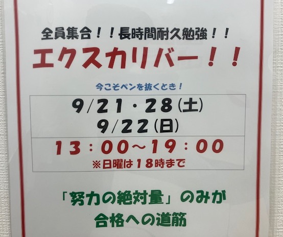 今年から、通常土曜日行うエクスカリバー(定期テスト対策)に加え、日曜開校が始まり、ena全体でフォローアップをしています。