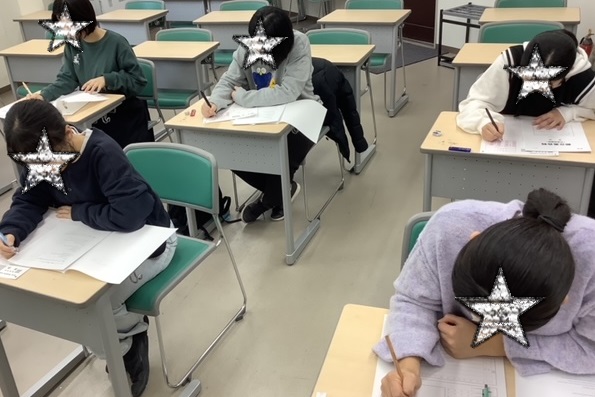 画像は今日の模試と冬期最終日の中3模試の様子です。