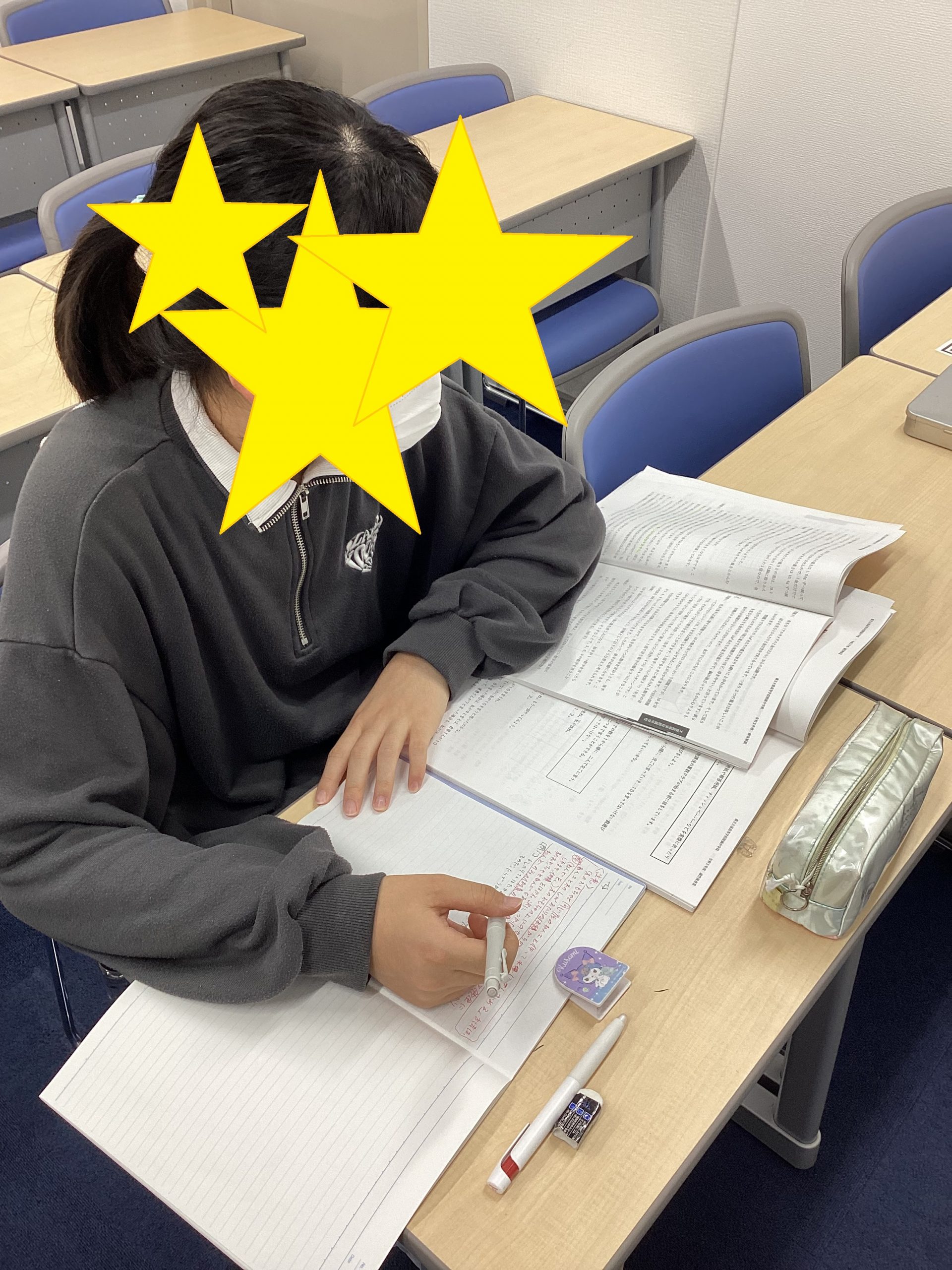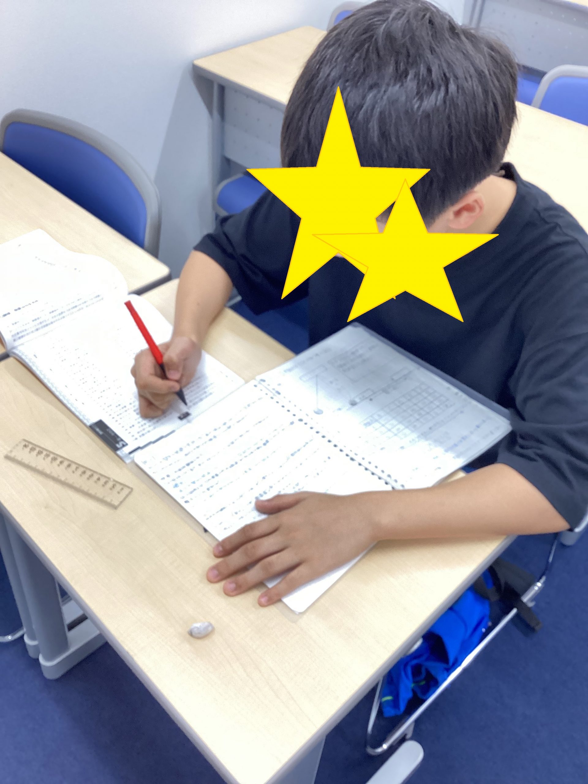試験開始前に自習に取り組む小6生です。