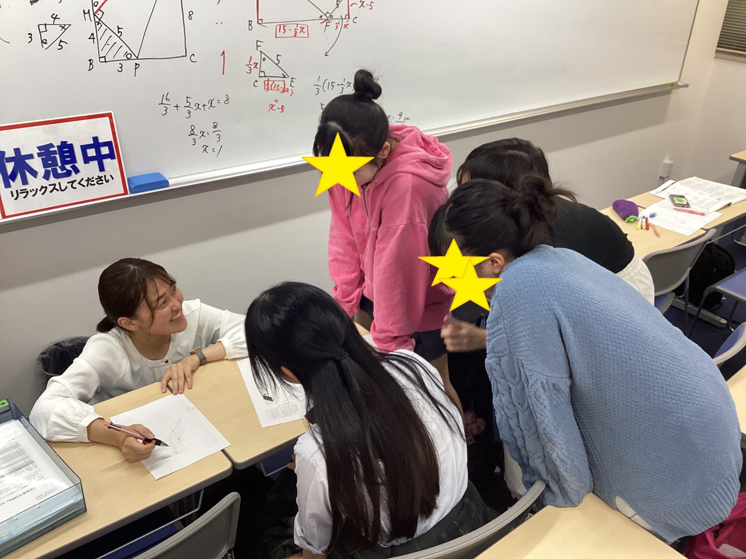 授業内容をもう一度説明してほしいという生徒が集まり、臨時解説を行っています。