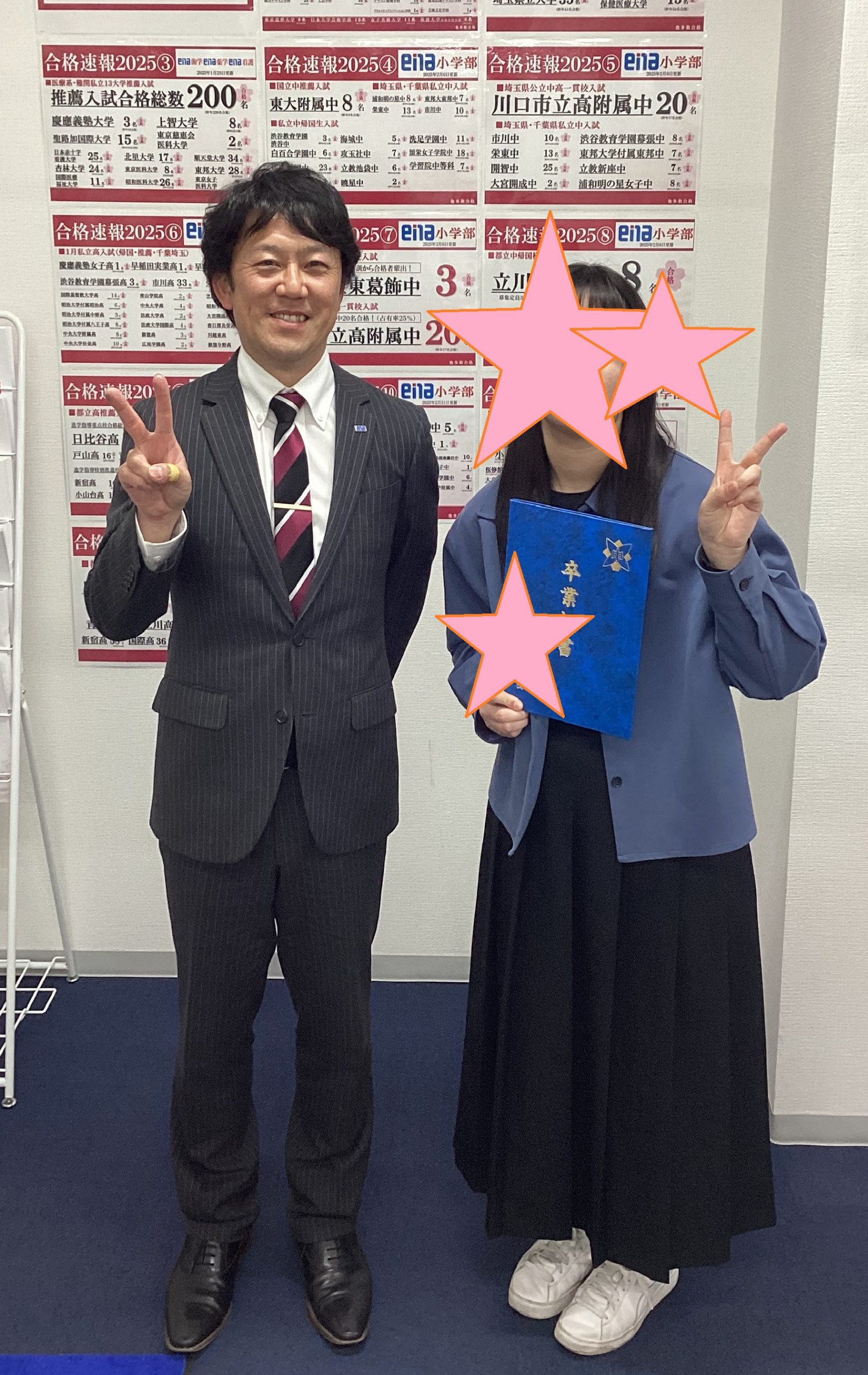 以前勤務していた校舎の中3生が、卒業証書をもって、進学先の報告しに来てくれました。