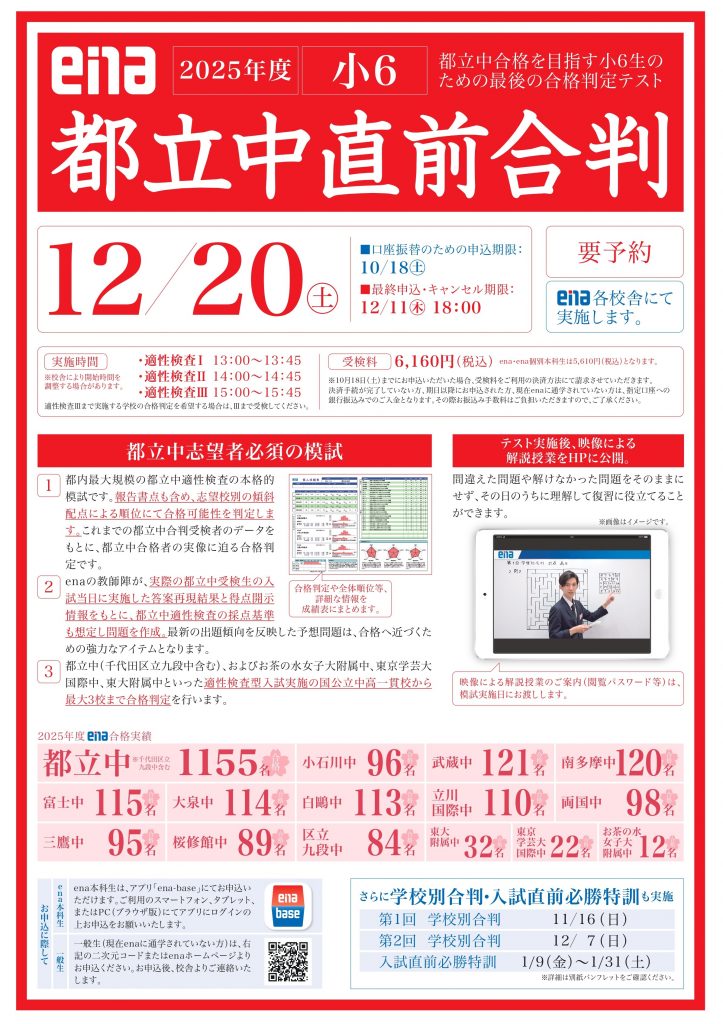 12/20(土)都立中直前合判※小6生対象