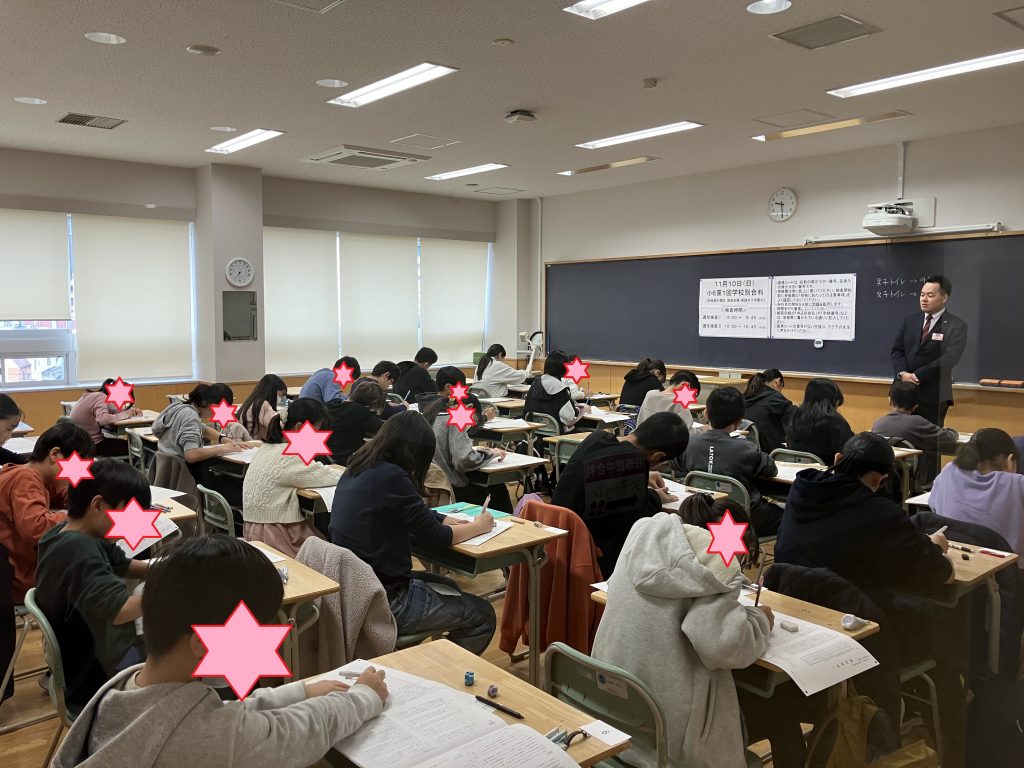 実際の入試を模して私立中学校の教室をお借りしての緊張感のある模試です。
