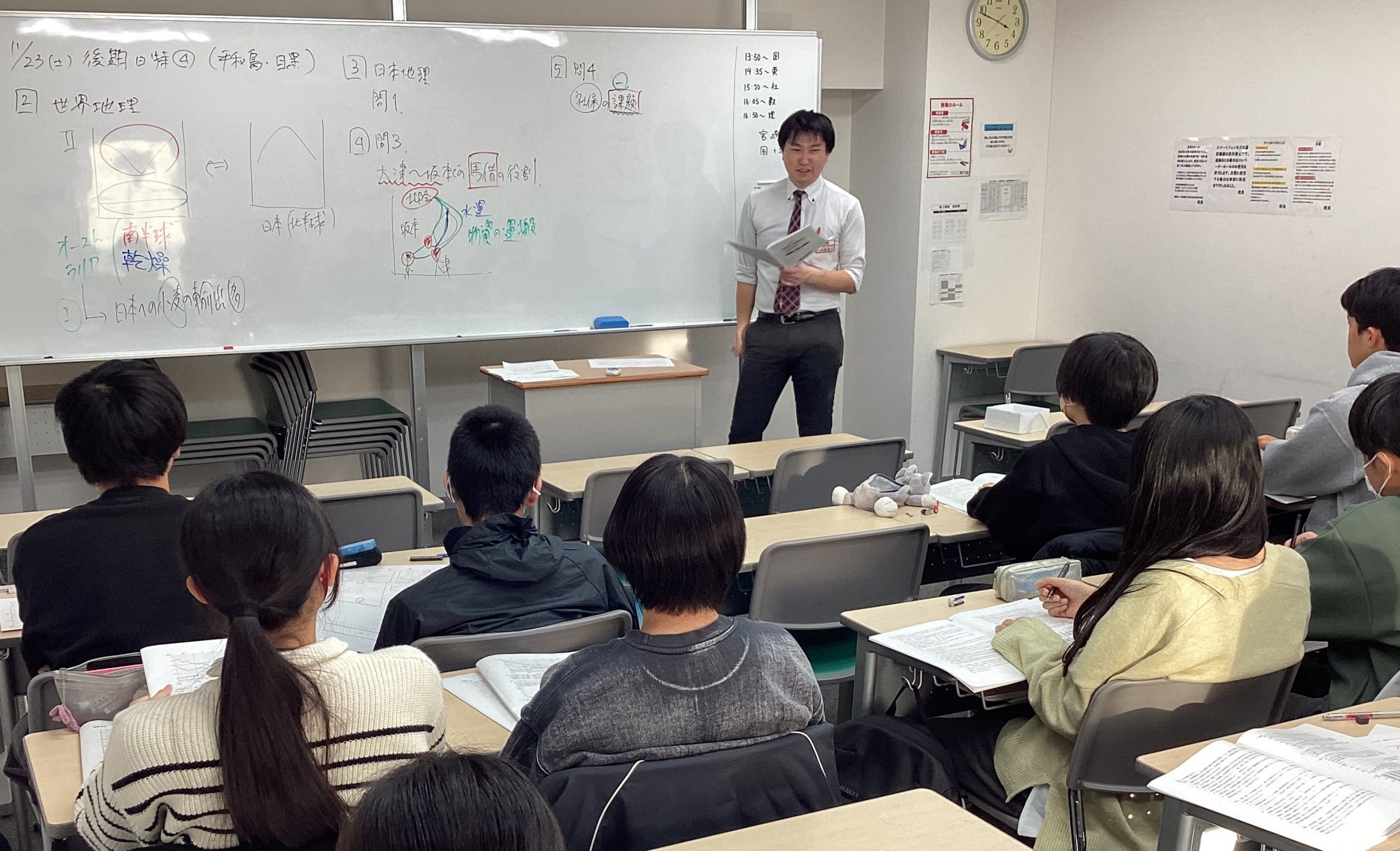 武蔵小山の校舎に中学3年生が集まり共通問題の演習、解説をしました。
