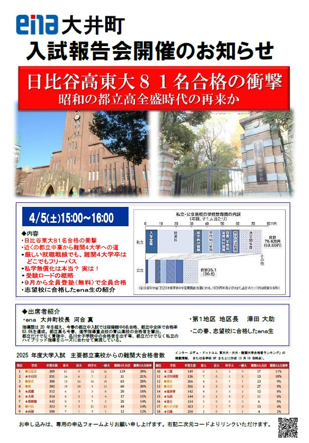 【お知らせ】4/5(土)入試報告会を開催いたします!