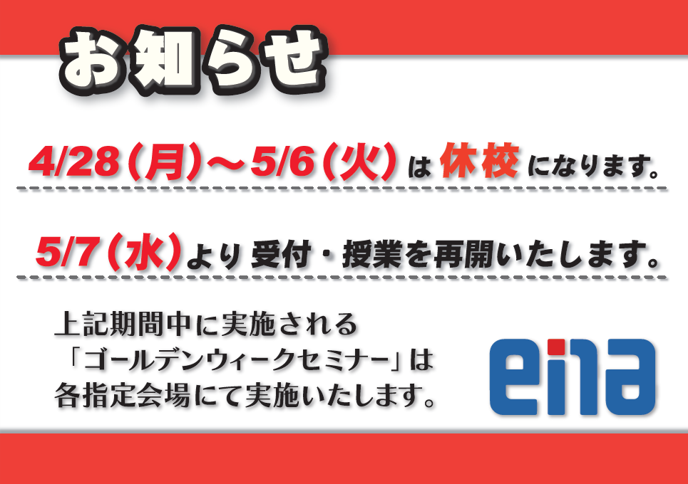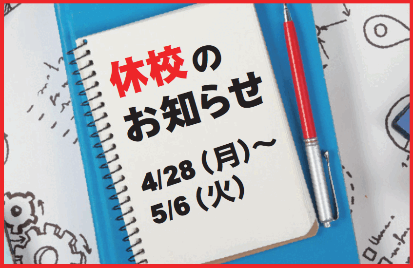 4/28(月)より5/6(火)まで校舎は休校となります。