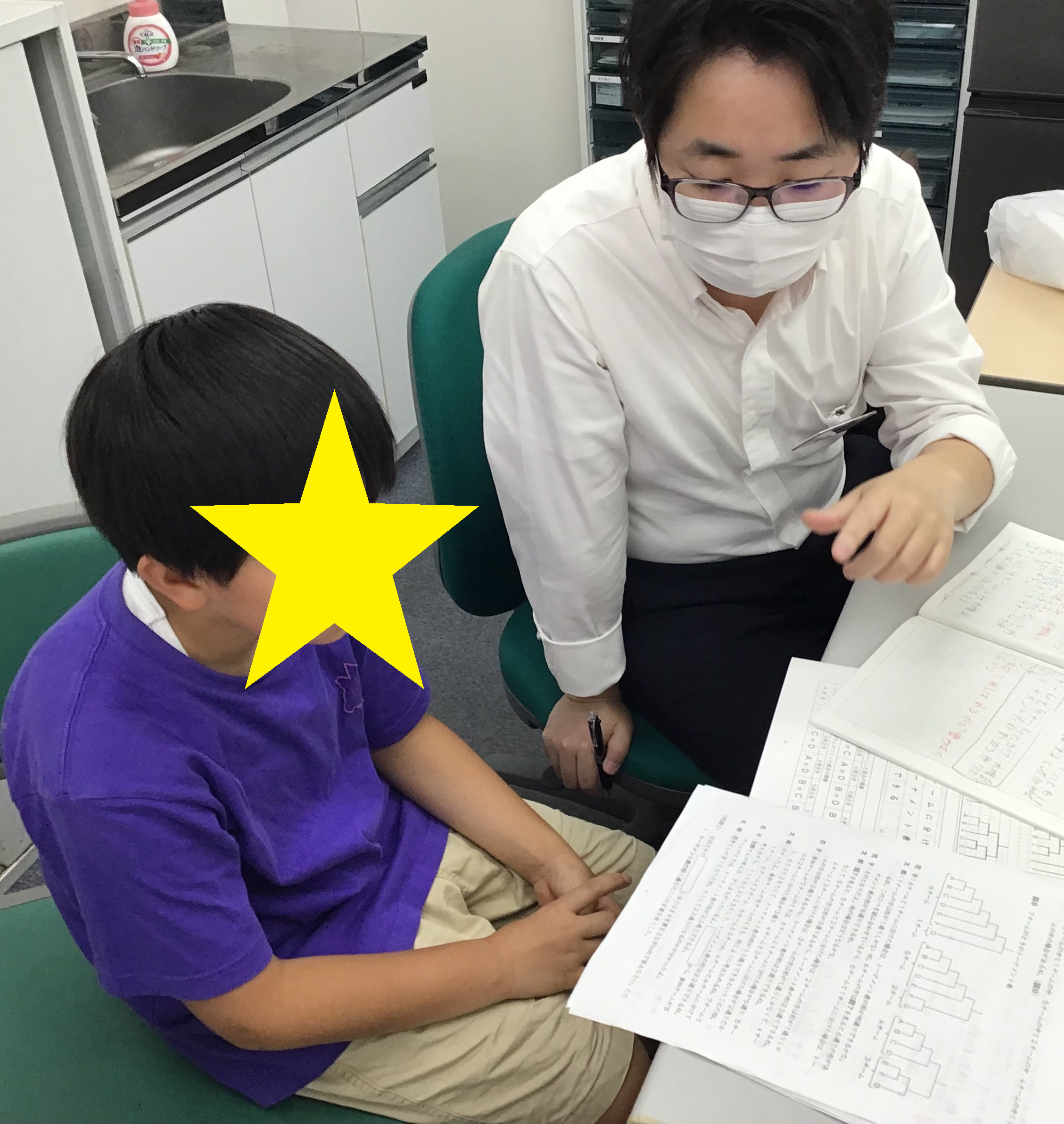 櫻井校長や講師へせっせと質問にくる小5、小6。
