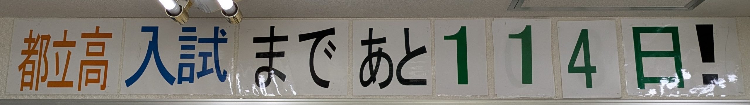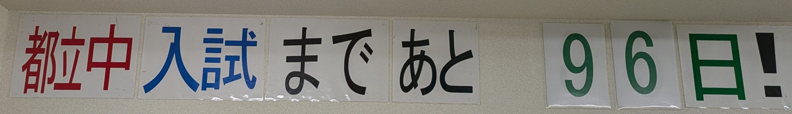 先週の土曜日に、「都立中入試まで100日」ということで、中学入試・高校入試のカウントダウンを掲示しだしました。