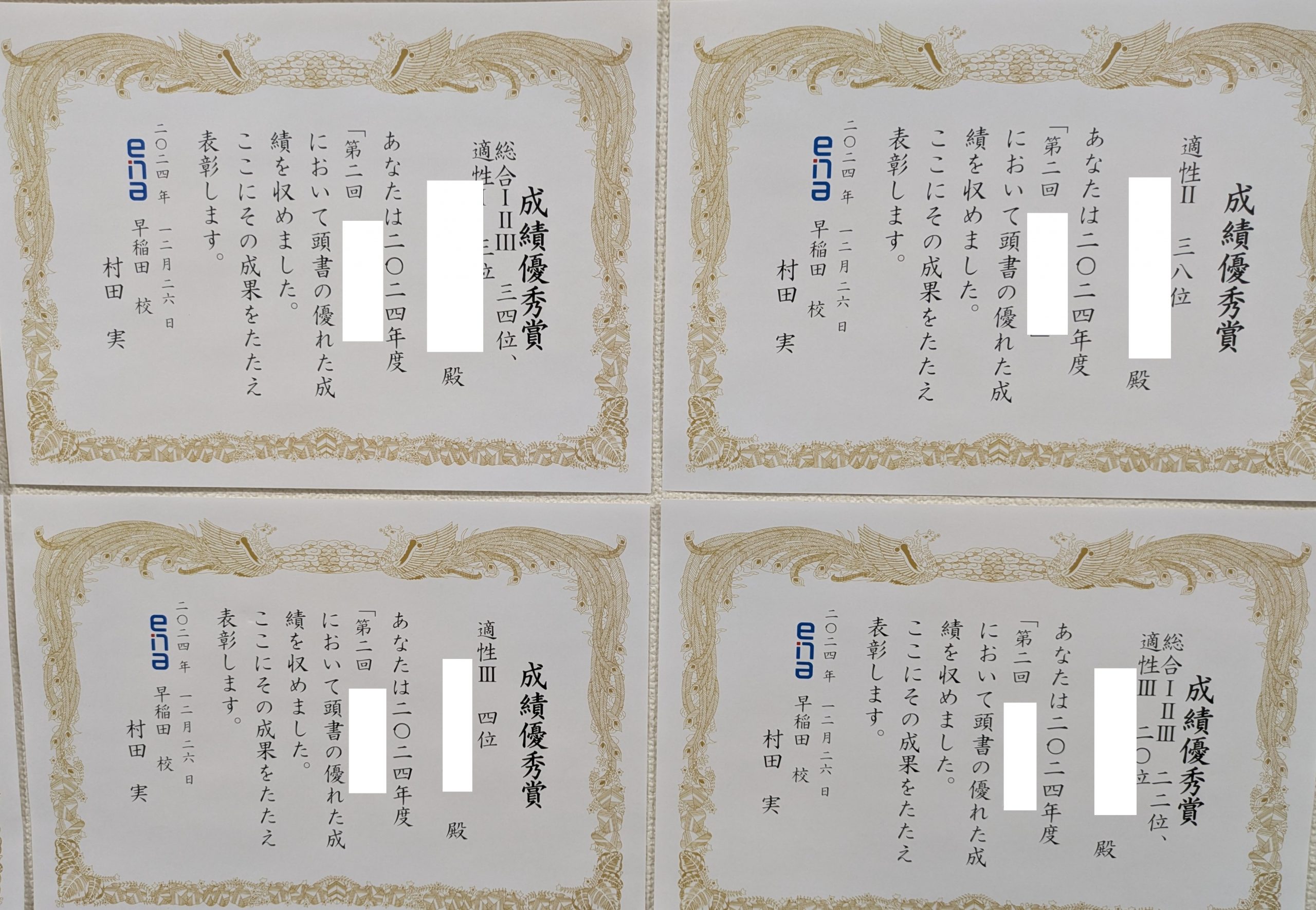 ↑昨年12月に行われた最後の「学校別合判」の成績優秀者です