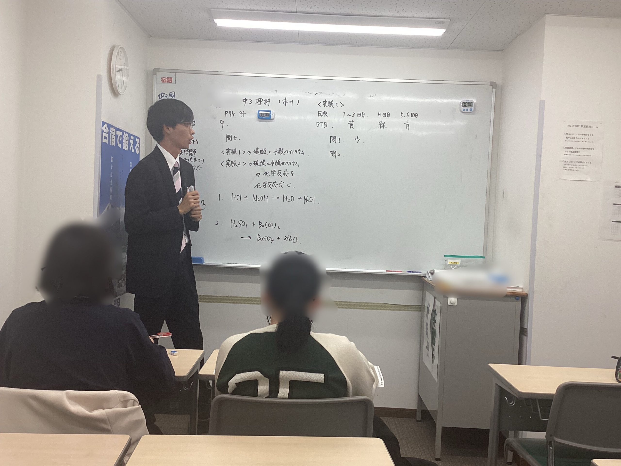 化学の分野、特に化学反応式の記述や計算に重点をおいて演習をしました。