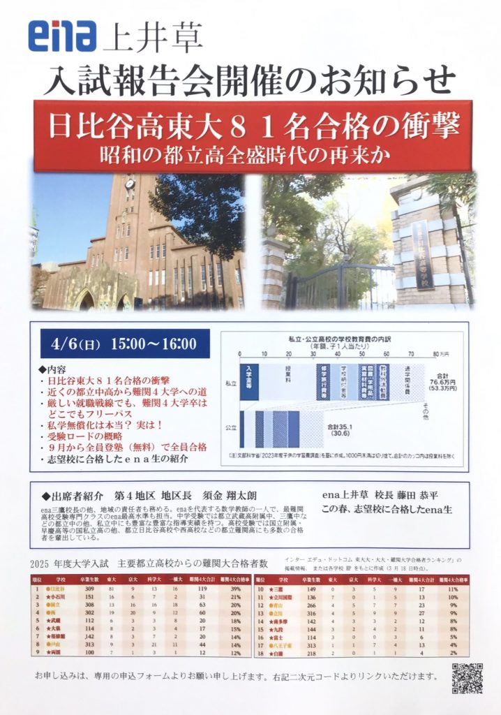 ena上井草 入試報告会開催のお知らせ