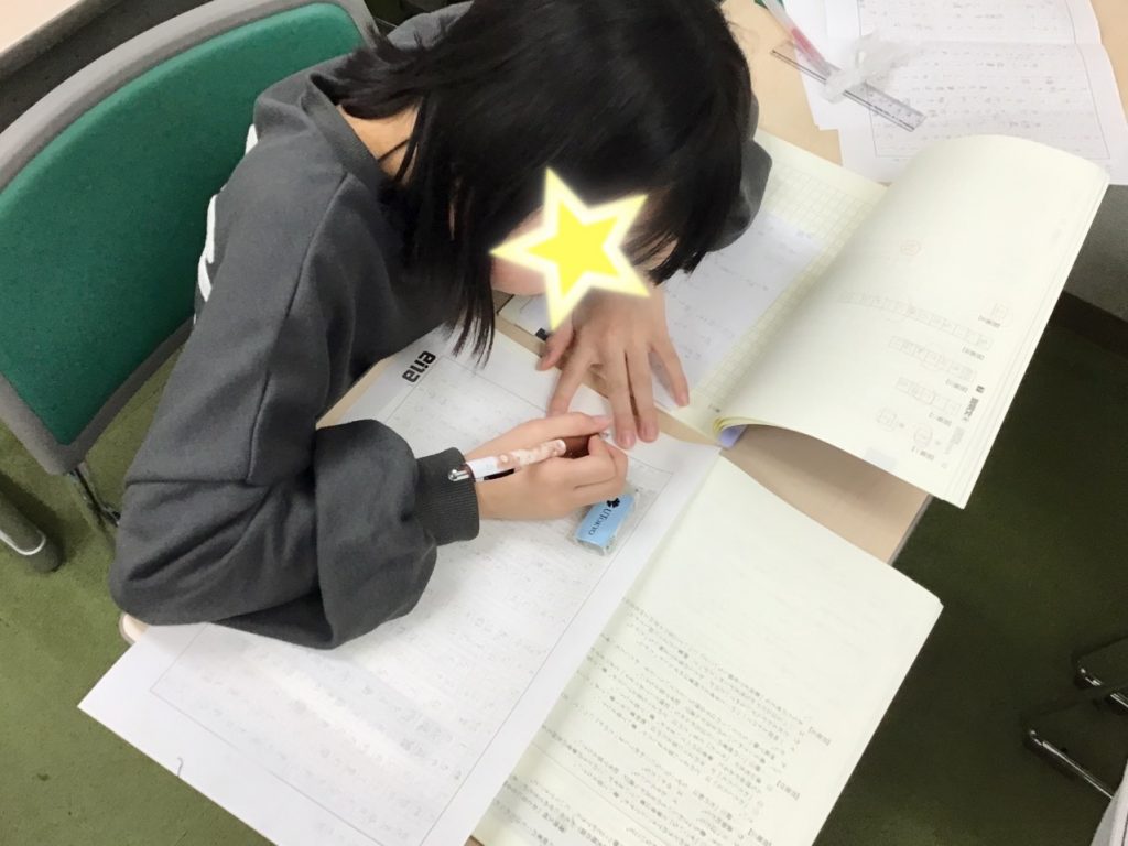 本日の作文の授業では一生懸命構成を考えながら書いていました。