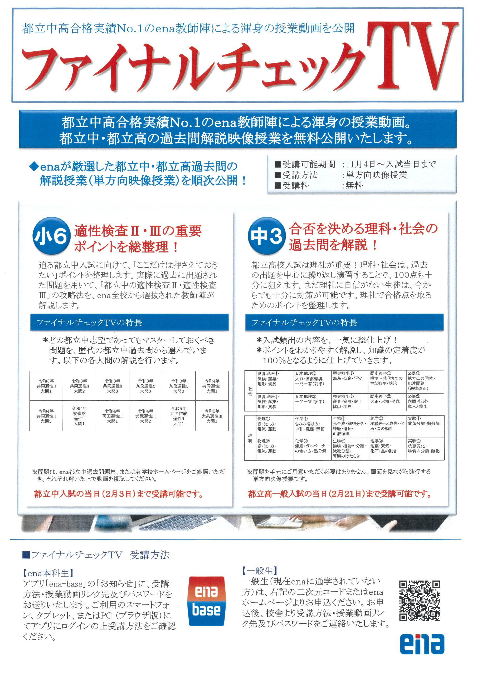 お問い合わせ先 ena教務部