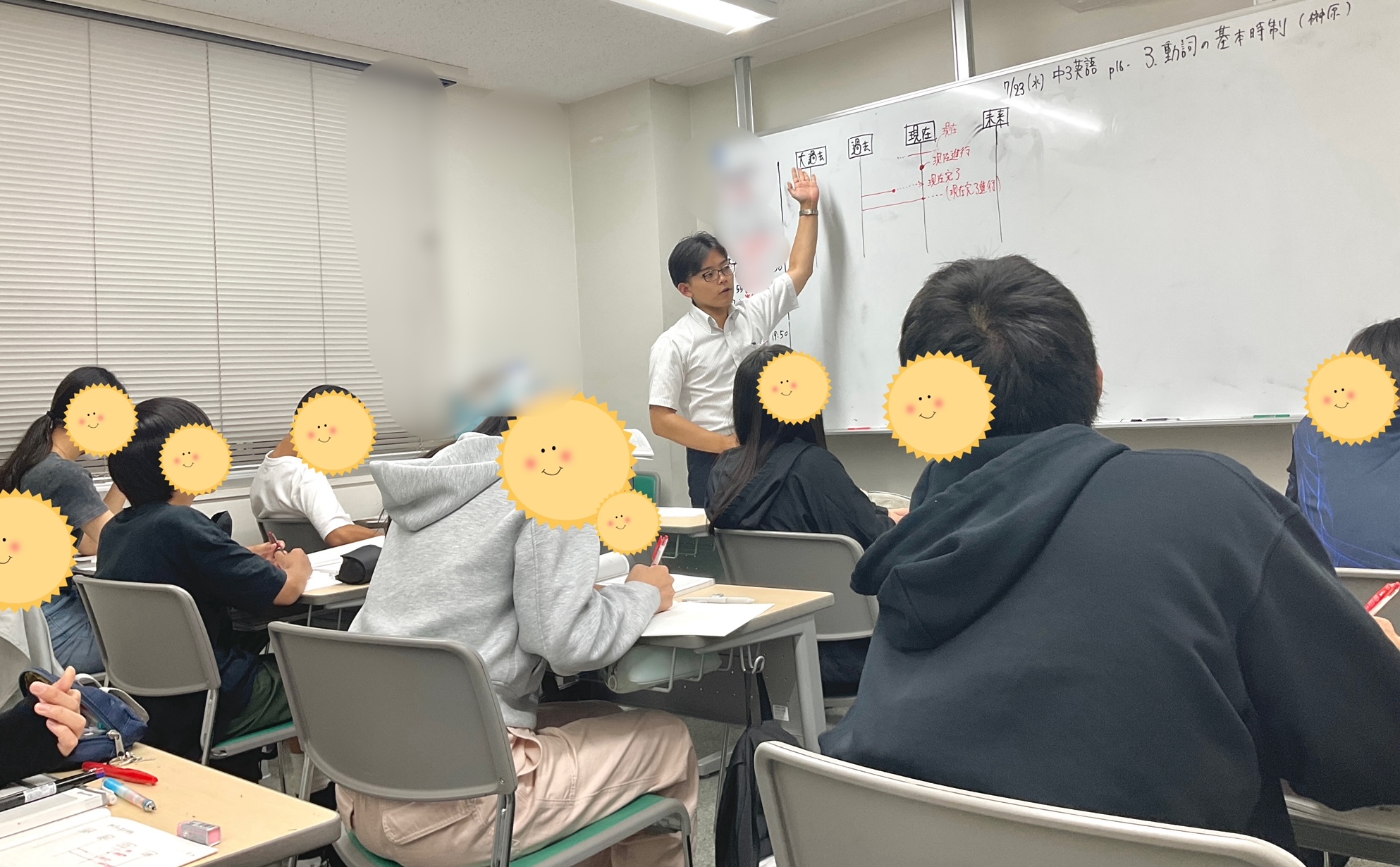 私も自分の勉強のために、たまに中3生と一緒に榊原先生の英語の授業を受けています。