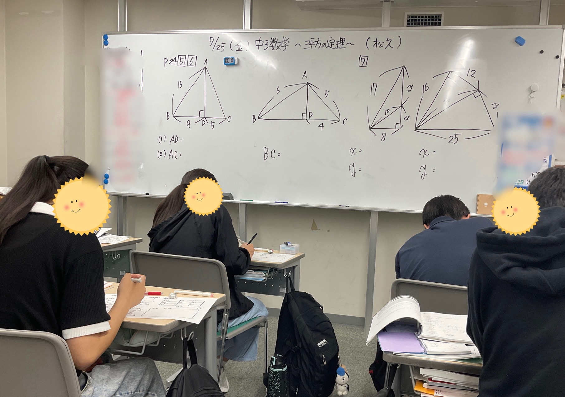 数学は相似が終わり、三平方もいよいよ終盤。